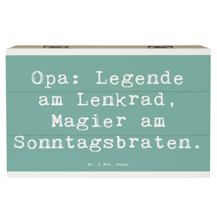 Die wunderschöne Holzkiste von Mr. & Mrs. Panda, bedruckt mit dem liebevollen Spruch 'Opa: Legende am Lenkrad, Magier am Sonntagsbraten', ist das perfekte Geschenk für all die stolzen Großväter, die in der Familie eine ganz besondere Rolle spielen. Diese robuste Erinnerungskiste ist nicht nur ein wahrer Eyecatcher, sondern bietet auch einen idealen Aufbewahrungsort für wertvolle Schätze und Erinnerungen.