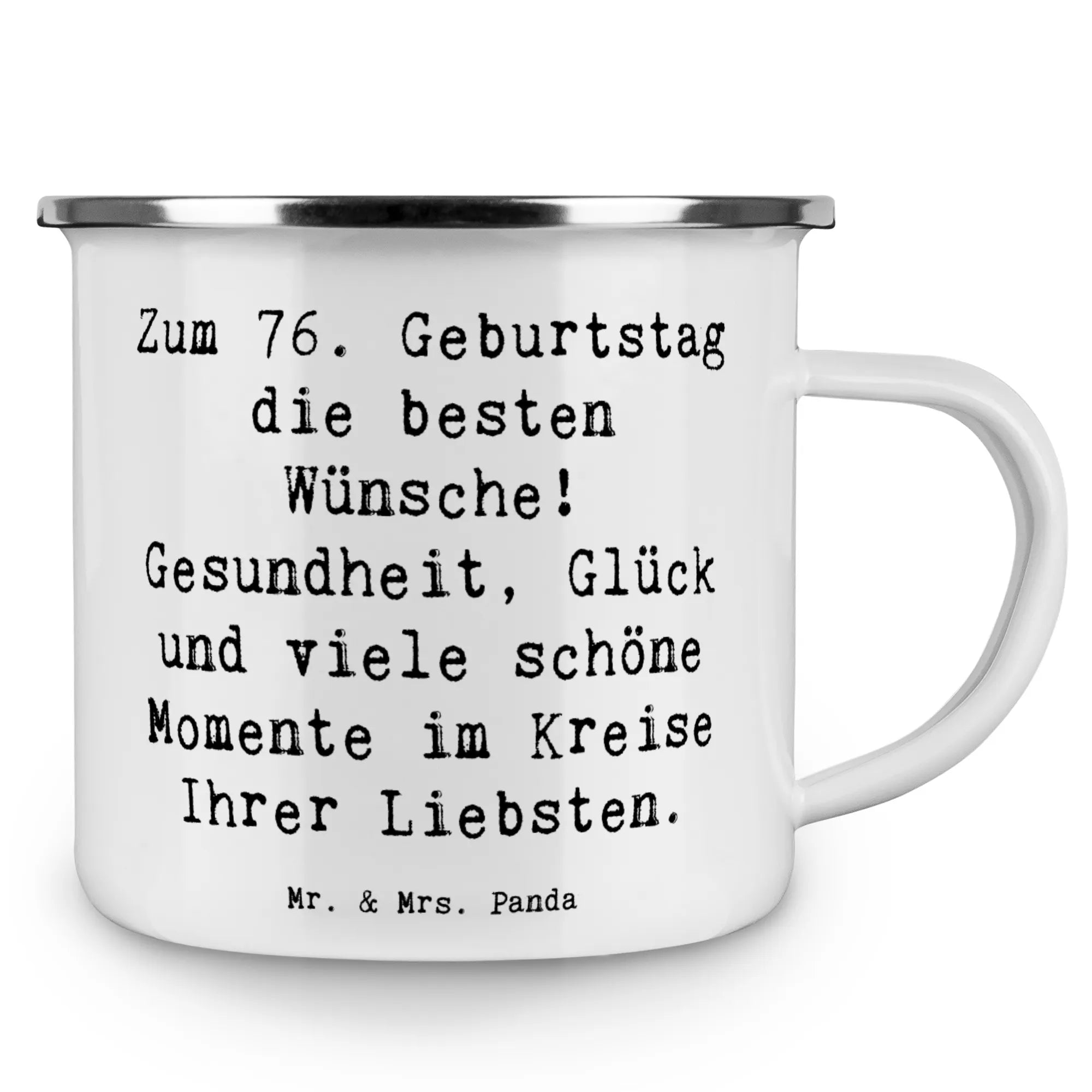 Camping Emaille Tasse Spruch 76. Geburtstag – Mr. & Mrs. Panda