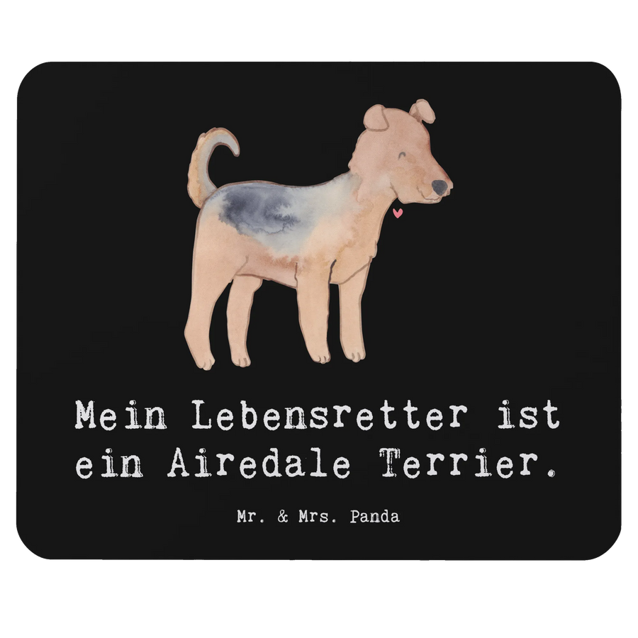 Mauspad Airedale Terrier Lebensretter - mit Spruch - Schwarz