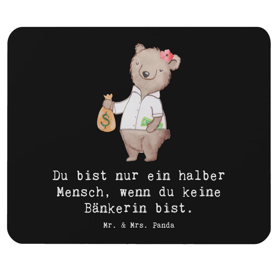 Die liebevoll gestaltete Unterlage zeigt unseren süßen Bär, der mit einem Geldsack in der Hand strahlt und den Slogan "Du bist nur ein halber Mensch, wenn du keine Bänkerin bist." prangt in bunten Buchstaben. Dieses Mauspad ist die perfekte Ergänzung für jedes Büro oder Homeoffice und verleiht dem Arbeitsplatz eine persönliche Note.