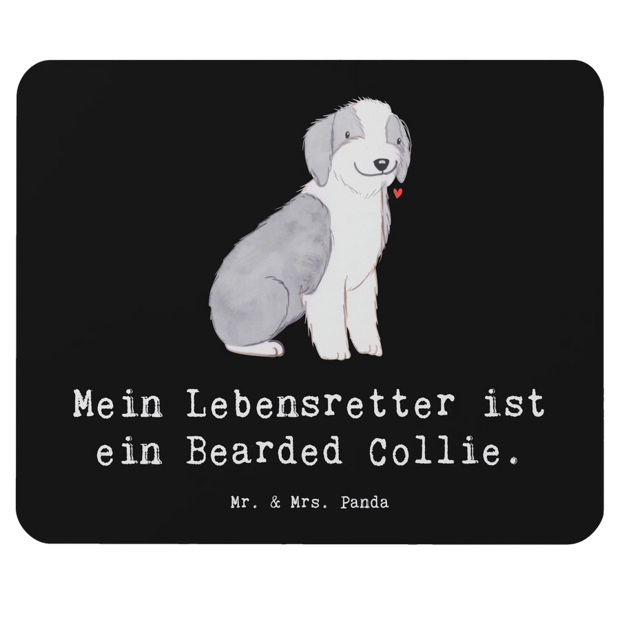 Mauspad Bearded Collie Lebensretter - mit Spruch - Schwarz