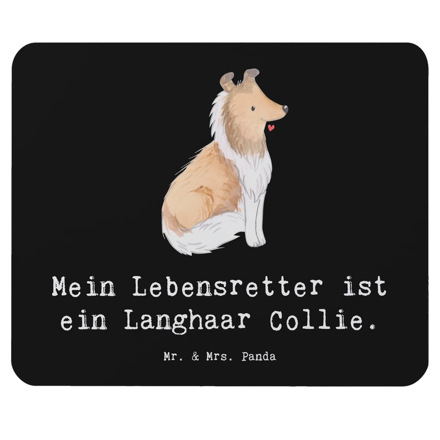 Mauspad Langhaar Collie Lebensretter - mit Spruch - Schwarz
