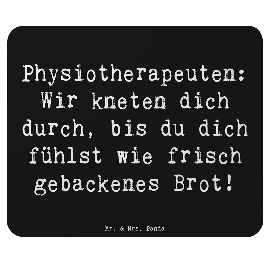 Wenn du auf der Suche nach einem einzigartigen Geschenk für einen Physiotherapeuten oder eine Physiotherapeutin bist, dann ist das Mauspad von Mr. & Mrs. Panda genau das Richtige für dich! Mit dem liebevollen Spruch "Physiotherapeuten: Wir kneten dich durch, bis du dich fühlst wie frisch gebackenes Brot!" verbreitet dieses Mauspad Freude und bringt ein Lächeln in den Büroalltag.