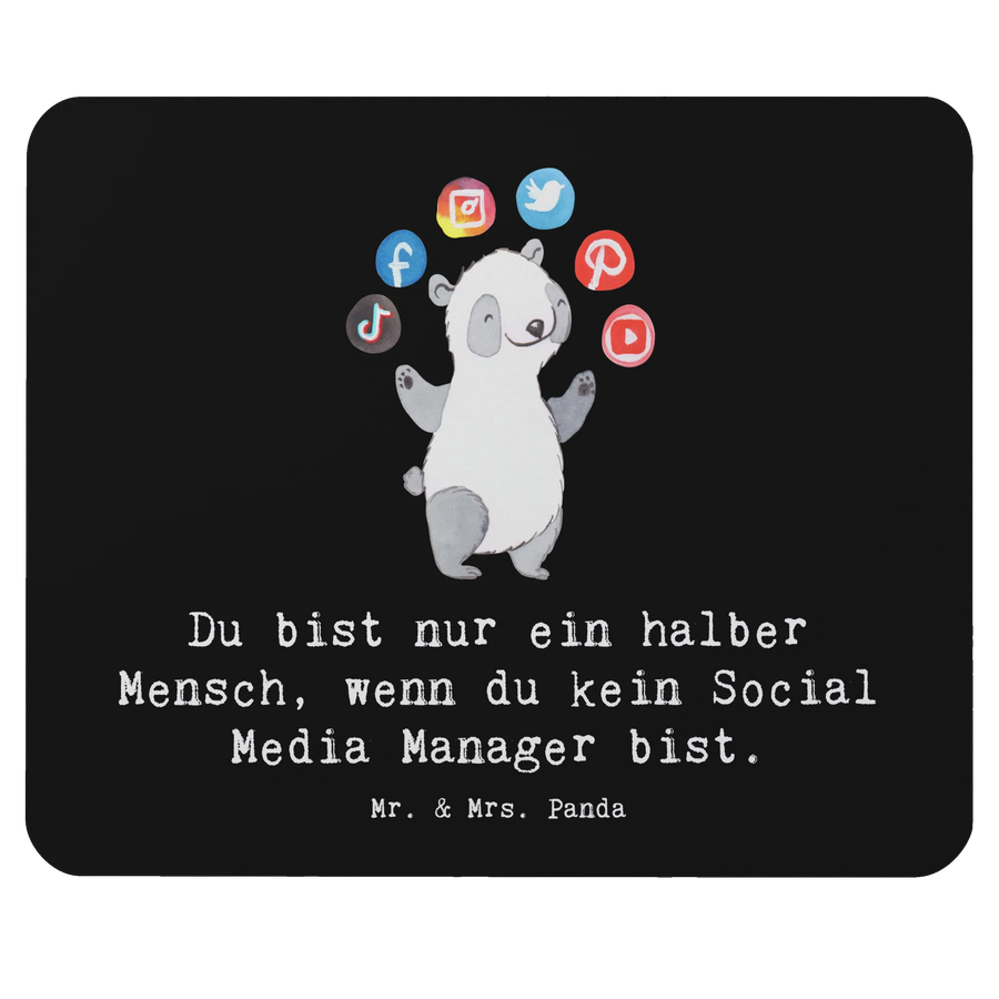 Das niedliche Design mit einem süßen Panda, der mit Social Media Icons jongliert, bringt Kreativität und Freude in den Arbeitsalltag. Mit dem Spruch: "Du bist nur ein halber Mensch, wenn du kein Social Media Manager bist", spricht es alle an, die im digitalen Raum unterwegs sind und macht es zu einem ganz besonderen Geschenk.