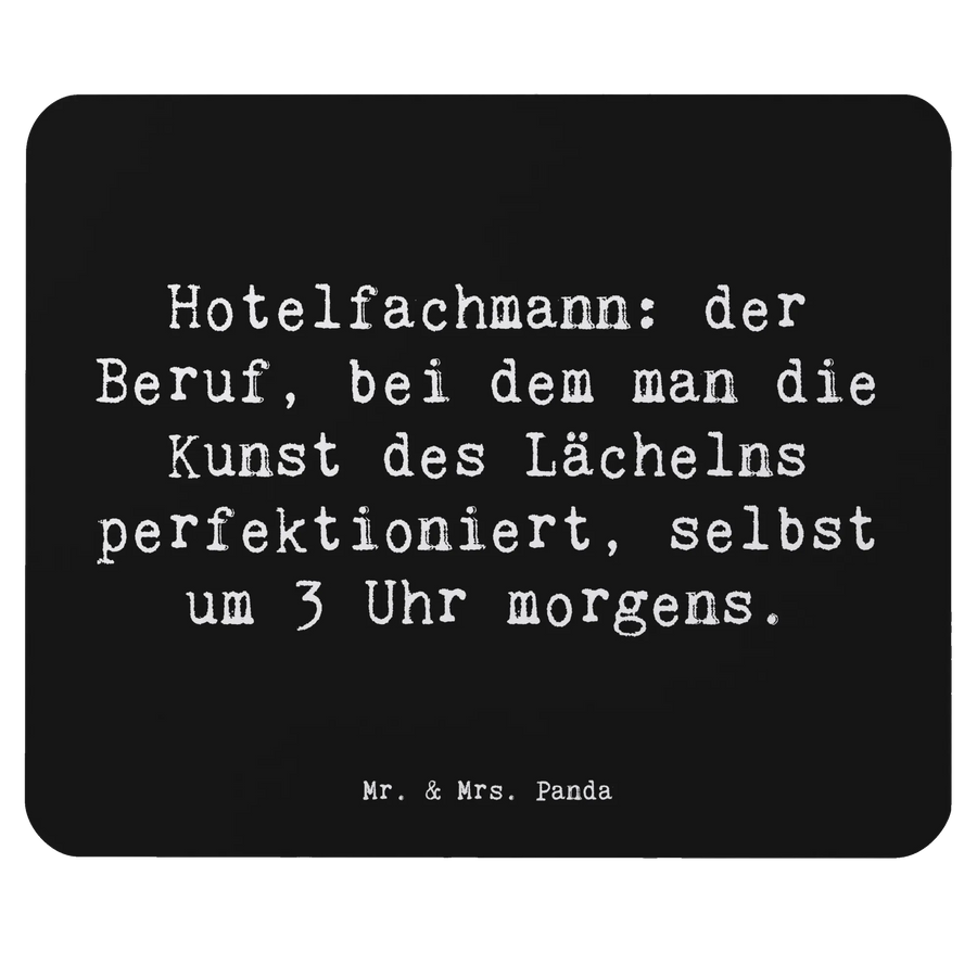Entdecke das perfekte Mauspad für alle Hotelfachmänner – ein wunderschönes und angenehmes Mauspad von Mr. & Mrs. Panda! Mit dem Spruch "Hotelfachmann: der Beruf, bei dem man die Kunst des Lächelns perfektioniert, selbst um 3 Uhr morgens" bringt dieses einzigartige Mauspad Charakter an deinen Arbeitsplatz.