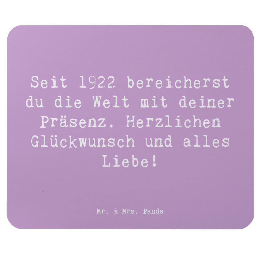 Mauspad Spruch Seit 1922 bereicherst du die Welt mit deiner Präsenz. Herzlichen Glückwunsch und alles Liebe! - Lavendeltraum