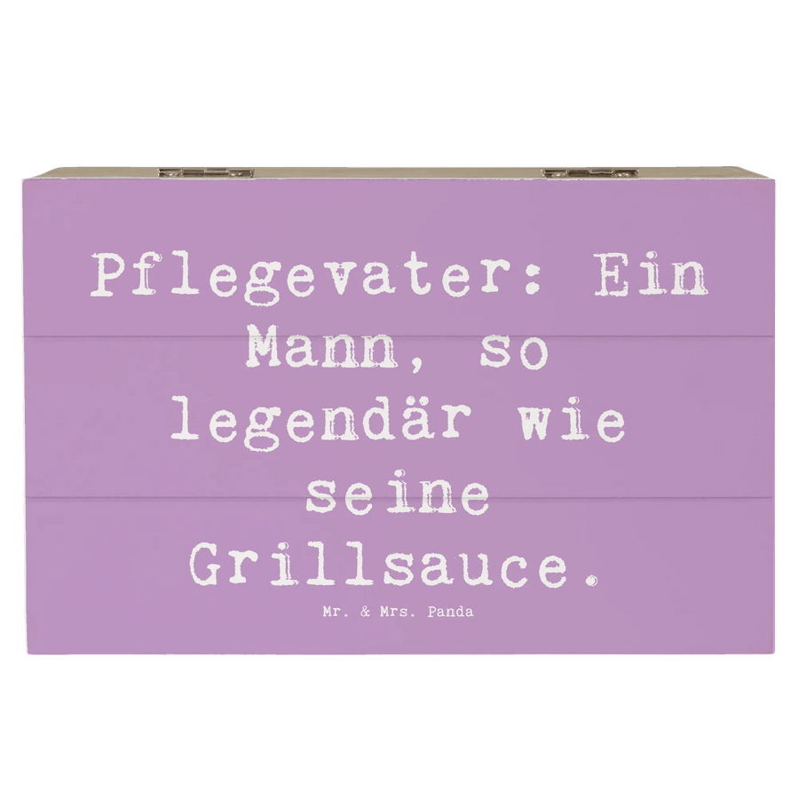 Die wunderschöne Holzkiste von Mr. & Mrs. Panda, bedruckt mit dem charmanten Motive "Pflegevater: Ein Mann, so legendär wie seine Grillsauce", ist das perfekte Geschenk für jeden Pflegevater.