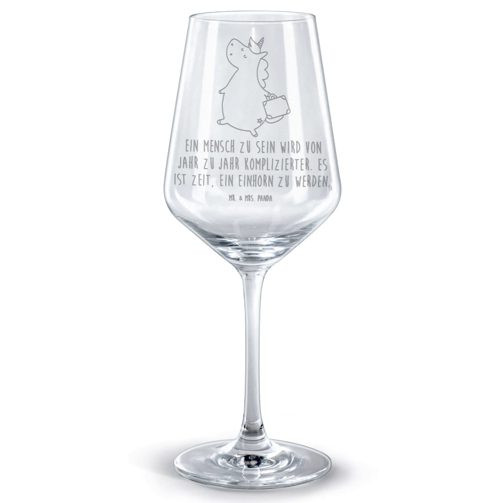 Das robuste Glas ist pflegeleicht und spülmaschinengeeignet. Die detailreiche Lasergravur verbindet das charmante Einhorn mit einem Koffer, perfekt für alle, die die Abenteuer des Lebens lieben – egal ob jung oder alt! Der Spruch „Ein Mensch zu sein wird von Jahr zu Jahr komplizierter. Es ist Zeit, ein Einhorn zu werden.“ auf dem Glas bringt ein Lächeln in dein Gesicht und macht es zum perfekten Accessoire für gesellige Abende mit Freunden oder romantische Dinner.
