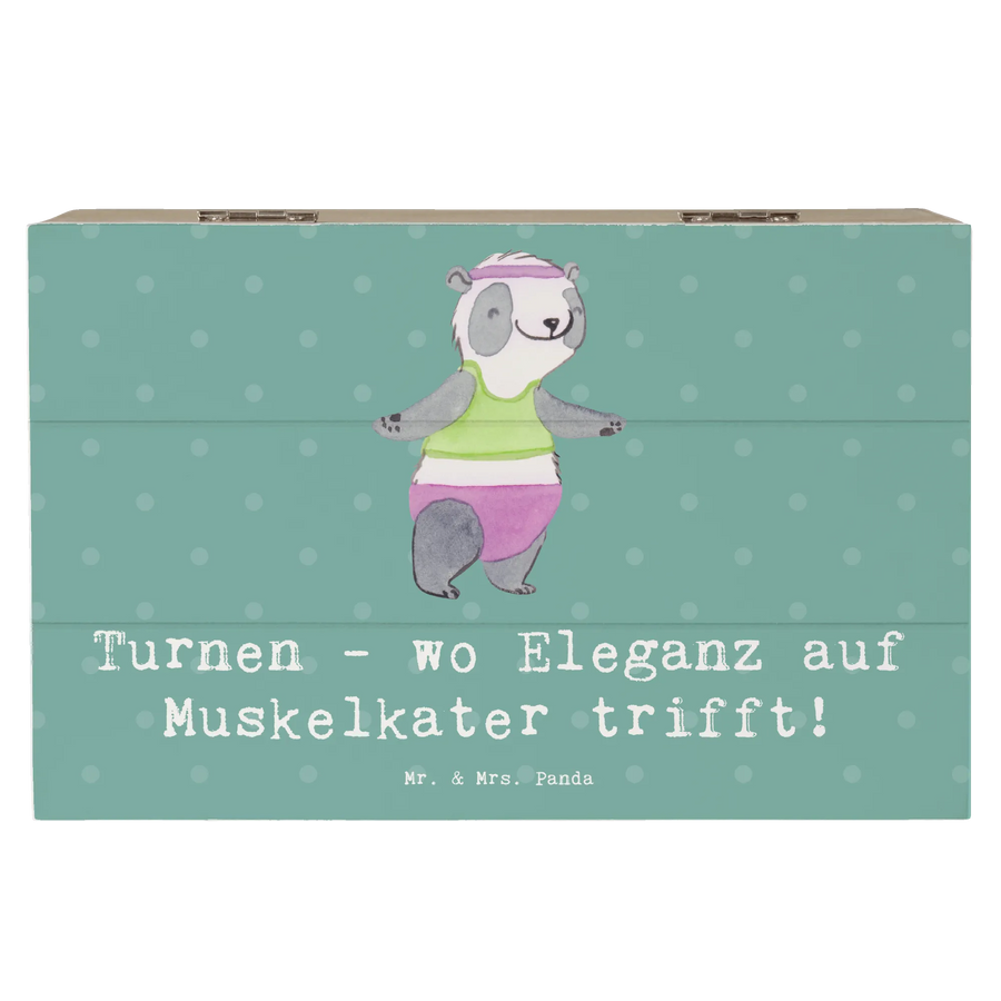 Entdecke die zauberhafte Holzkiste von Mr. & Mrs. Panda, die mit einem wunderschönen Turnen-Motiv und dem Spruch 'Turnen - wo Eleganz auf Muskelkater trifft!' verziert ist. Diese Kiste ist nicht nur ein praktischer Aufbewahrungsort für all Deine Schätze, sondern auch ein fantastisches Geschenk für jeden Sportliebhaber.