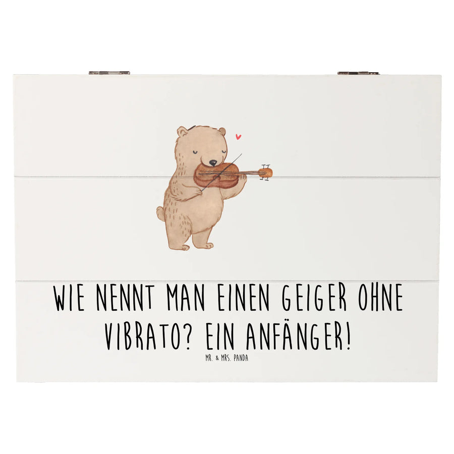 Entdecke die wundervolle Holzkiste von Mr. & Mrs. Panda, die mit einem zauberhaften Violinmotiv und einem humorvollen Spruch darauf verziert ist: "Wie nennt man einen Geiger ohne Vibrato? Ein Anfänger!" Diese schöne Erinnerungskiste ist perfekt, um all deine kostbaren Schätze zu bewahren – sei es für Erinnerungen an festliche Anlässe, Kindheitserinnerungen, Fotos oder einfach als stilvolle Aufbewahrungsbox für kleine Geheimnisse.