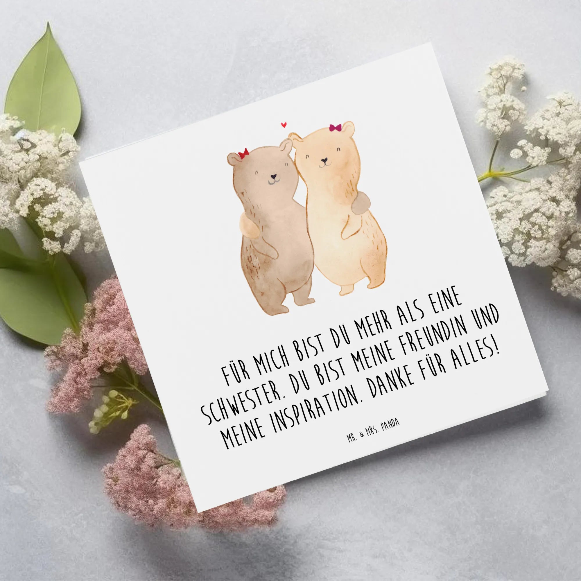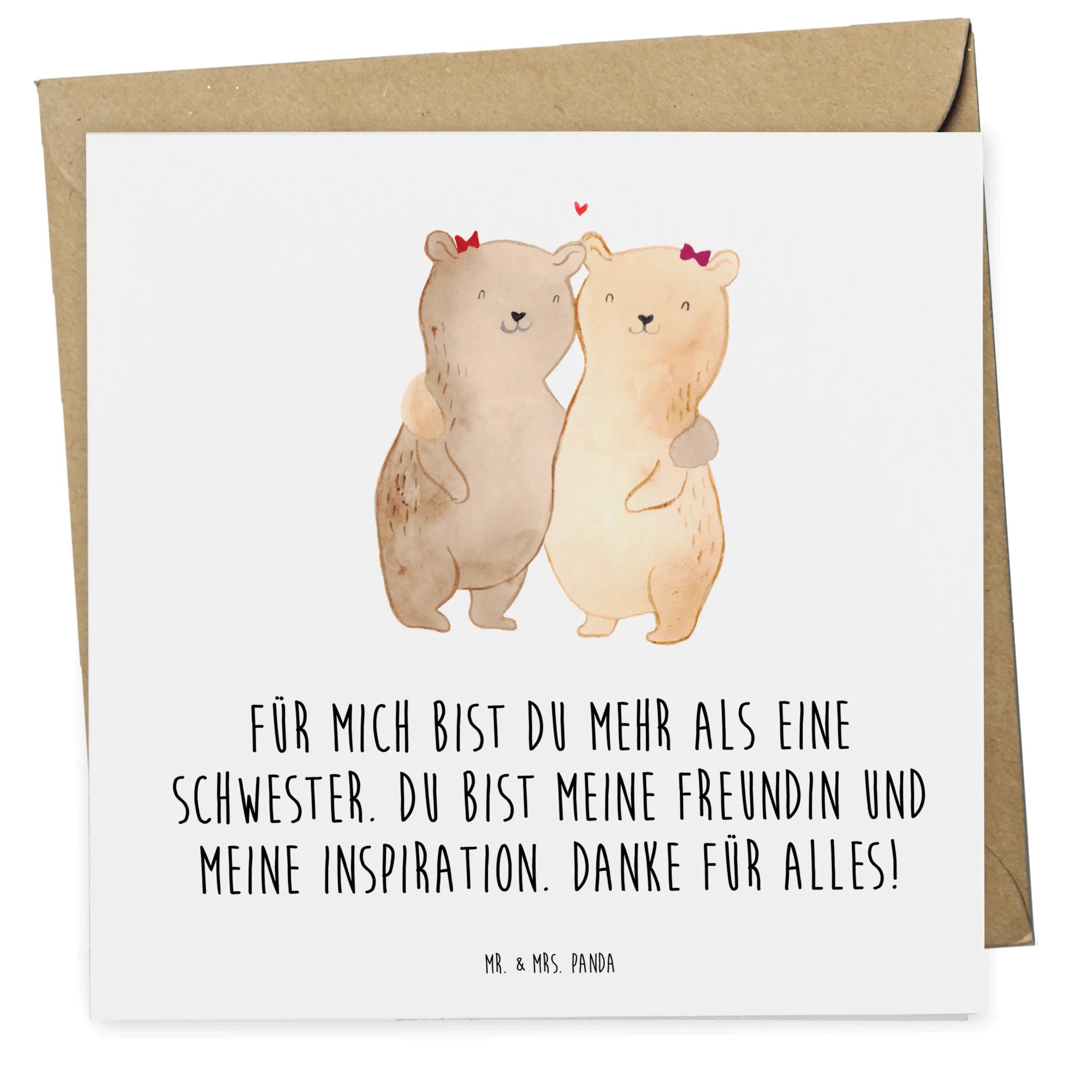 Mit dem liebevollen Spruch "Für mich bist du mehr als eine Schwester. Du bist meine Freundin und meine Inspiration. Danke für alles!" wird deine Botschaft unvergesslich. Die Karte hat die Maße 140 mm x 140 mm und ist aus hochwertigem 300 Gramm Karton gefertigt, sodass sie besonders stabil ist.