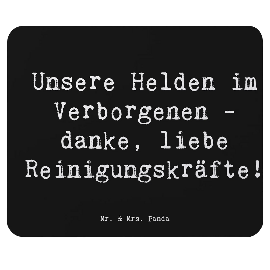 Das perfekte Mauspad von Mr. & Mrs. Panda, bedruckt mit dem liebevollen Slogan "Unsere Helden im Verborgenen - danke, liebe Reinigungskräfte!" ist ein wunderbares Geschenk für alle, die ihre Dankbarkeit ausdrücken möchten.