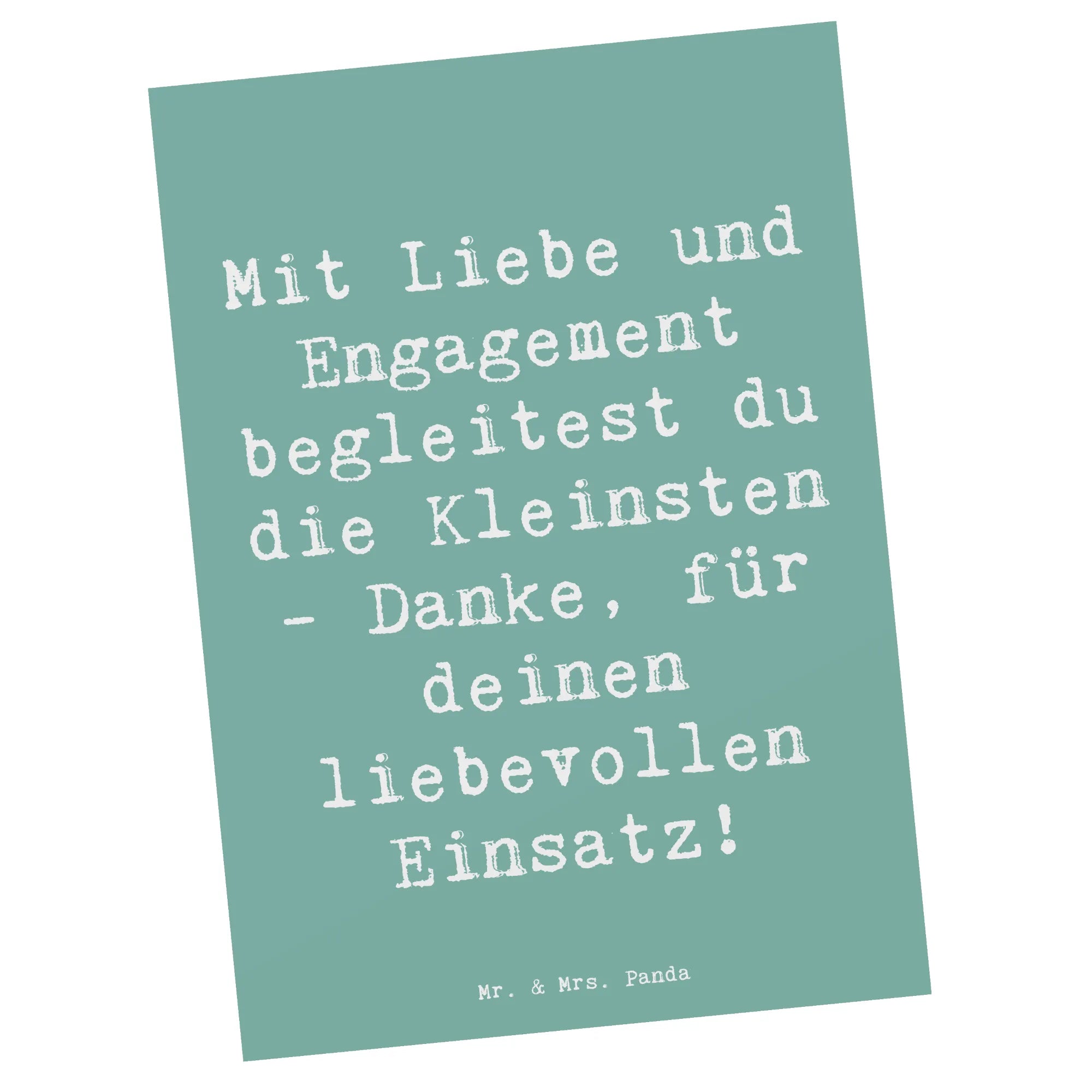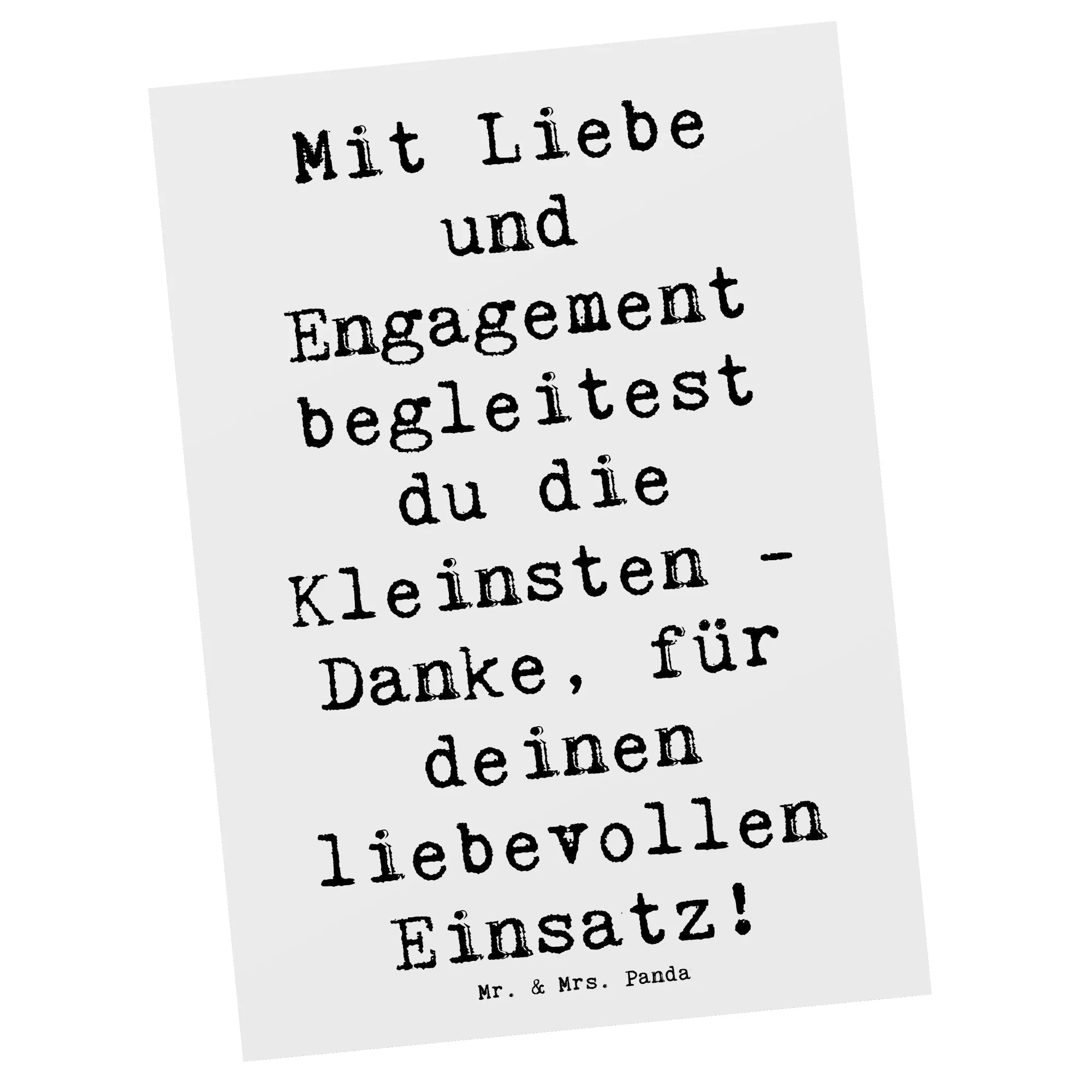 Unsere zauberhafte Postkarte aus der Danke-Kollektion von Mr. & Mrs. Panda ist das perfekte Dankeschön für Erzieherinnen und Erzieher. Auf der Vorderseite steht der liebevolle Spruch: "Mit Liebe und Engagement begleitest du die Kleinsten - Danke, für deinen liebevollen Einsatz!" – kurz, ehrlich und berührend.