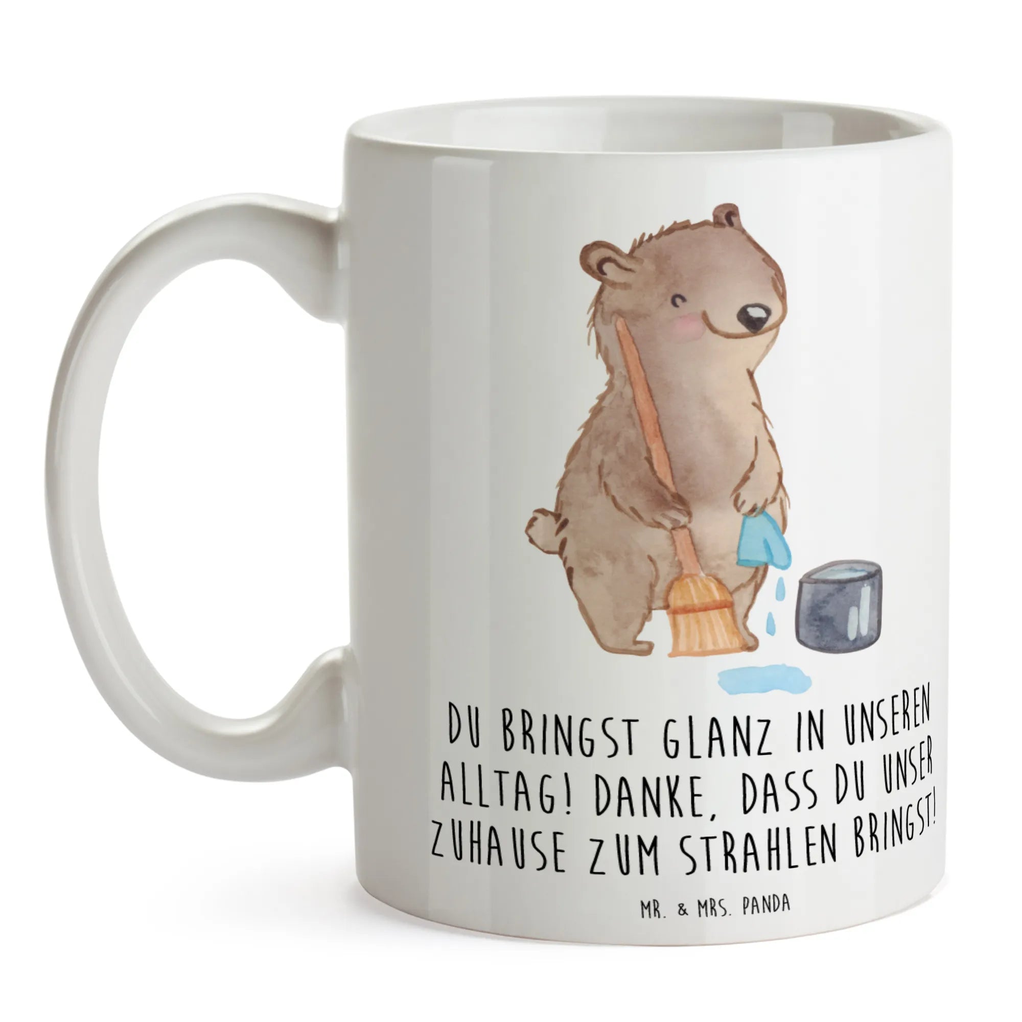 Die wunderschöne Putzfrau-Tasse von Mr. & Mrs. Panda ist der perfekte Weg, um Danke zu sagen! Ob für die fleißige Putzhilfe, die deine Räume zum Strahlen bringt, oder als hübsches Geschenk für eine besondere Person in deinem Leben – diese Tasse macht immer eine gute Figur.
