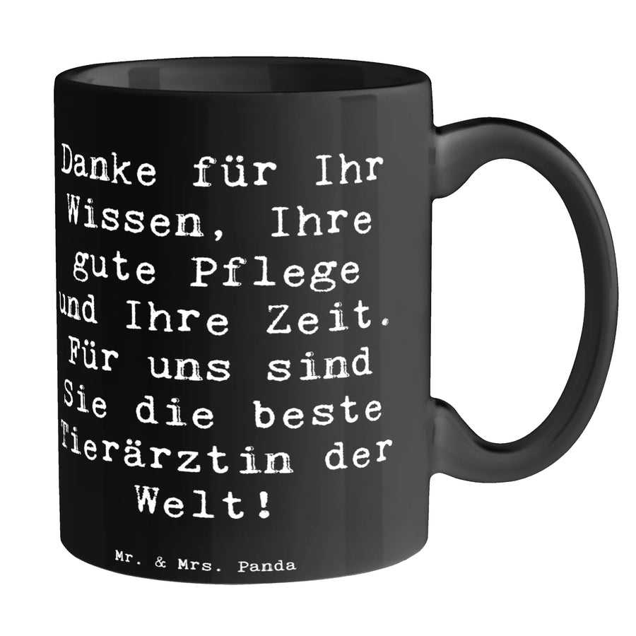 Entdecke die bezaubernde Tasse aus der Dankeschön-Kollektion von Mr. & Mrs. Panda, die perfekt für jeden Tierarzt ist! Diese wunderschöne spülmaschinenfeste Keramiktasse ist nicht nur praktisch, sondern auch eine liebevolle Geste der Anerkennung. Der liebevolle Slogan 'Danke für Ihr Wissen, Ihre gute Pflege und Ihre Zeit. Für uns sind Sie die beste Tierärztin der Welt!' wird jeden Morgen ein Lächeln ins Gesicht zaubern, egal ob beim Genuss von köstlichem Kaffee oder beruhigendem Tee.