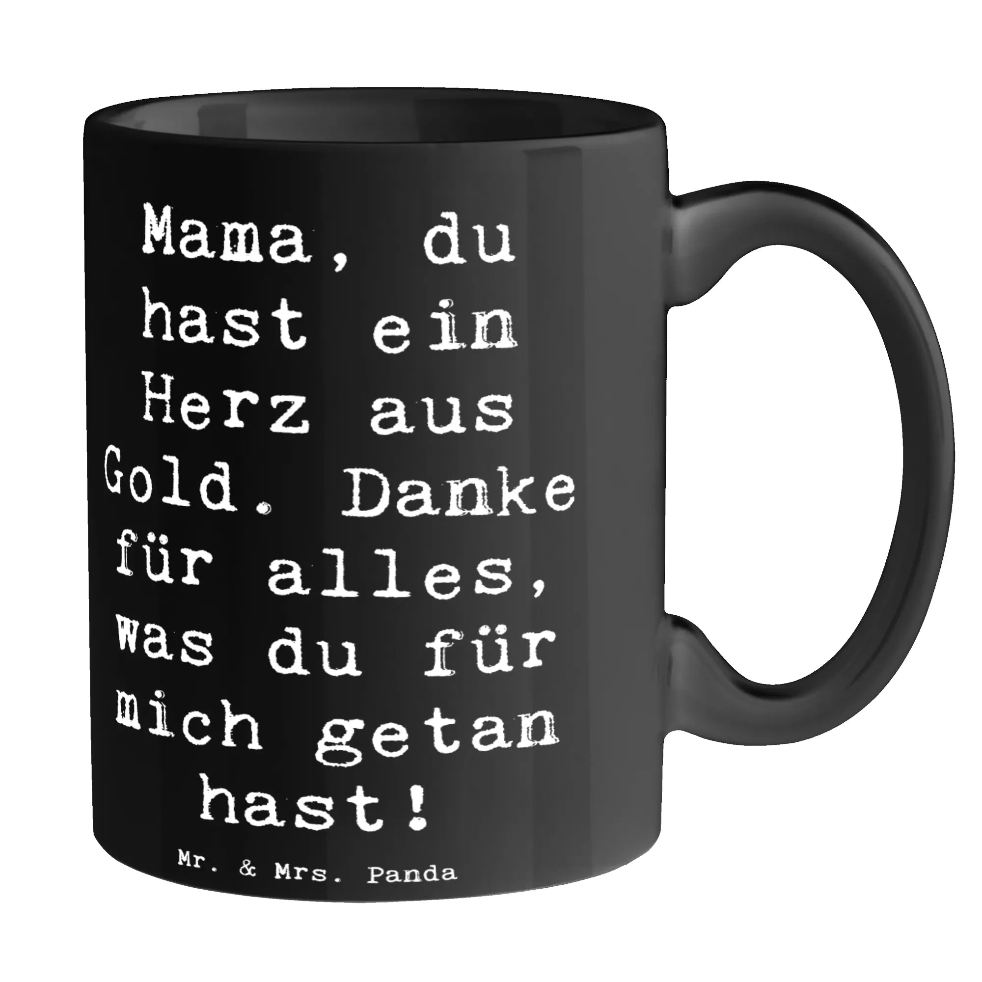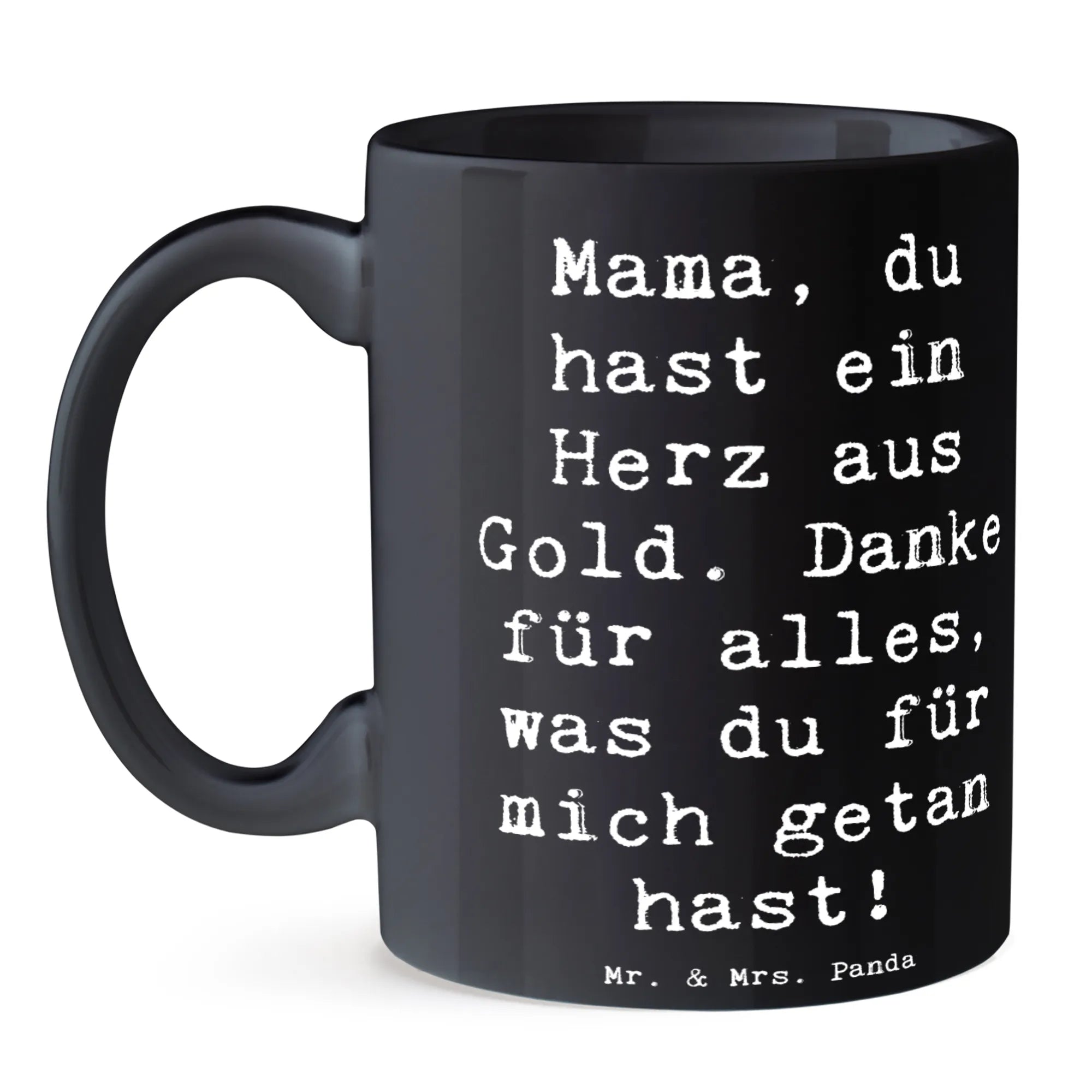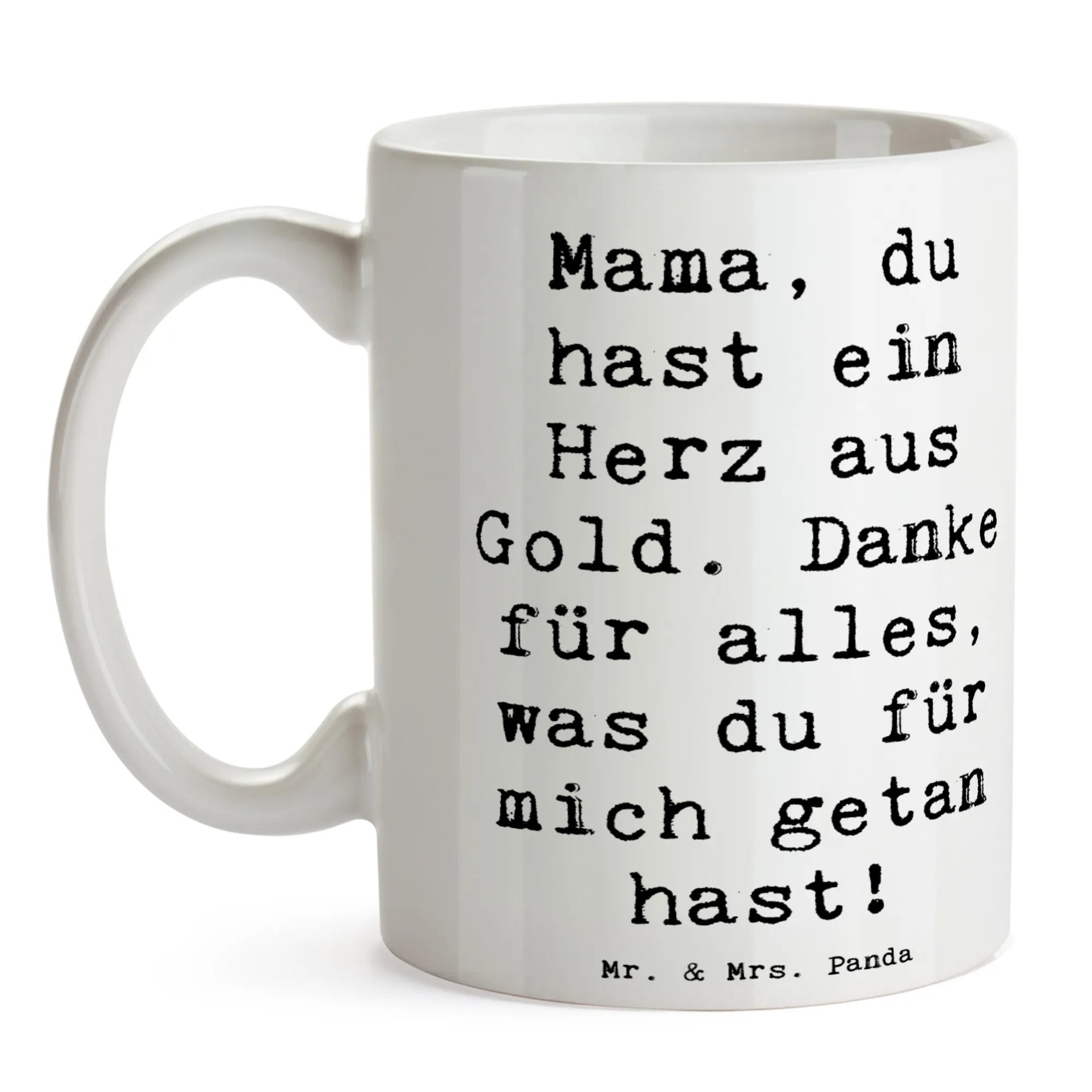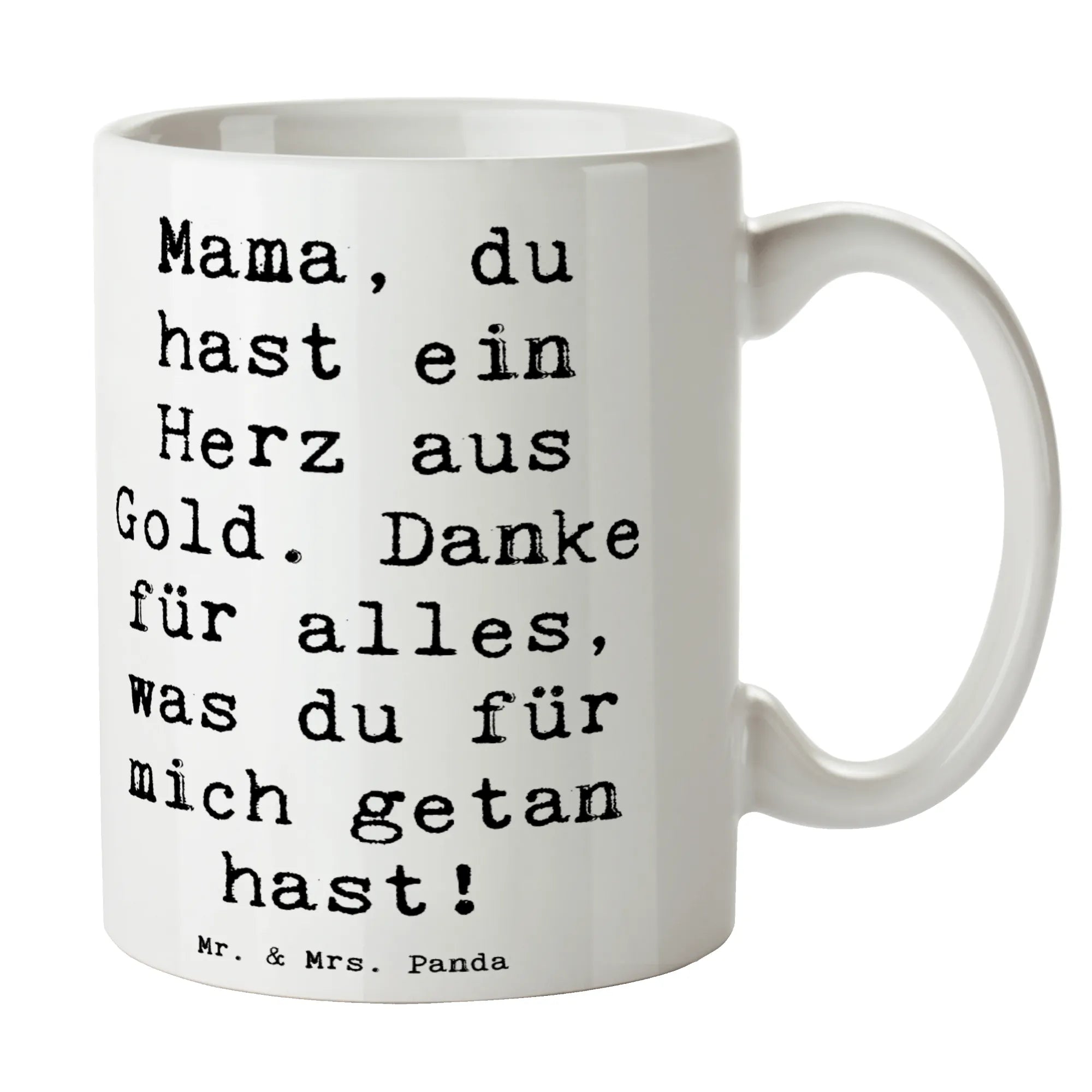 Unsere Mr. & Mrs. Panda Tasse "Mama" aus der Danke-Kollektion trägt den liebevollen Spruch: „Mama, du hast ein Herz aus Gold. Danke für alles, was du für mich getan hast!". Diese Kaffeetasse ist das perfekte Geschenk, um Dankbarkeit und Liebe auf den Punkt zu bringen.
