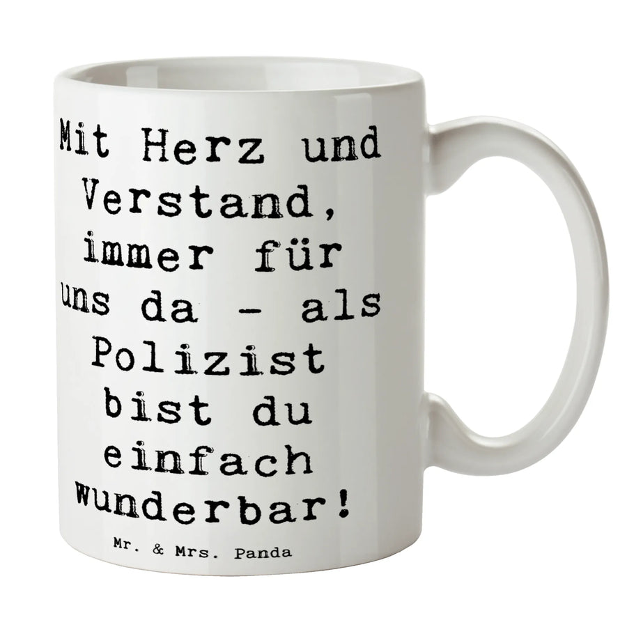 Du suchst nach dem perfekten Geschenk, um einem besonderen Polizisten ganz herzlich 'Danke' zu sagen? Dann ist die bezaubernde Tasse mit dem Spruch 'Mit Herz und Verstand, immer für uns da - als Polizist bist du einfach wunderbar!' aus der Dankeschön-Kollektion von Mr. & Mrs. Panda genau das Richtige für dich!