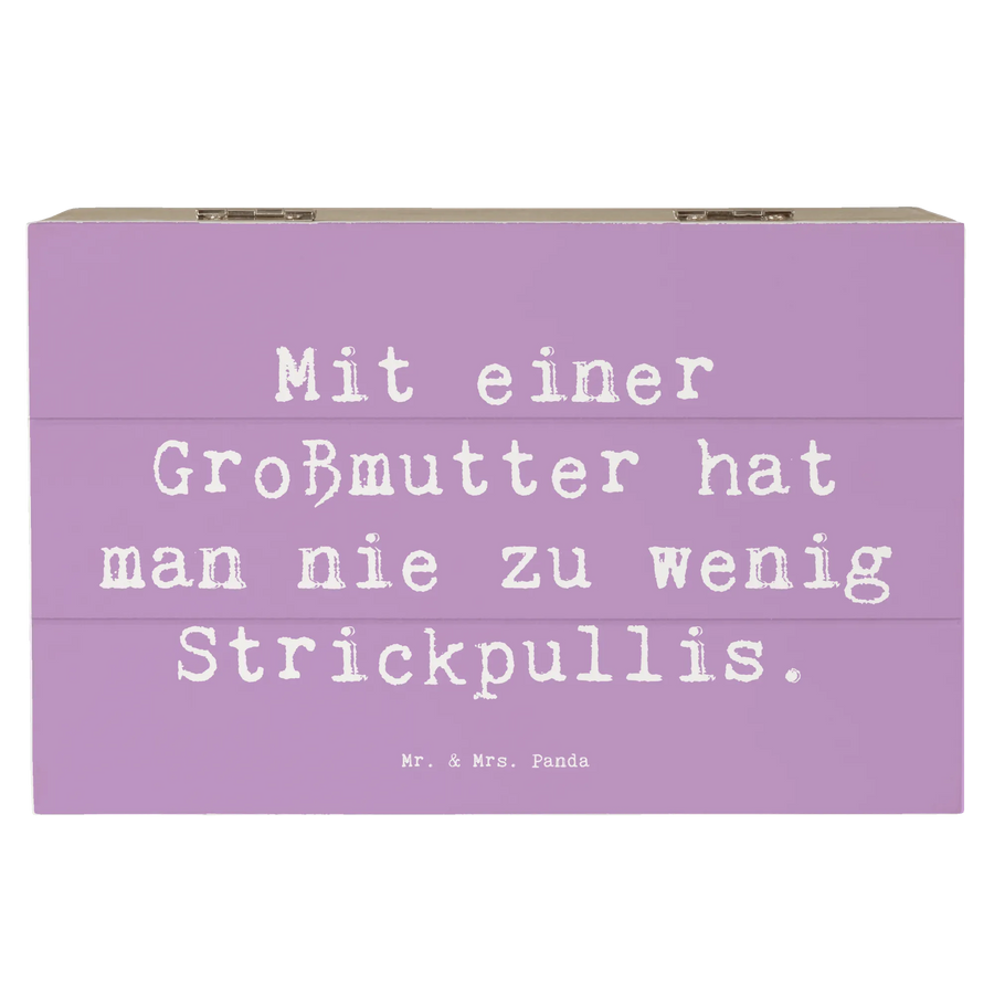 Eine kleine Schatztruhe für große Gefühle: Diese Holzkiste von Mr. & Mrs. Panda ist die perfekte Geschenkbox für Deine Großmutter. Bedruckt mit dem warmen Spruch „Mit einer Großmutter hat man nie zu wenig Strickpullis.“ erinnert sie an die Geborgenheit, Fürsorge und die liebevollen Rituale, die Großmütter so besonders machen.