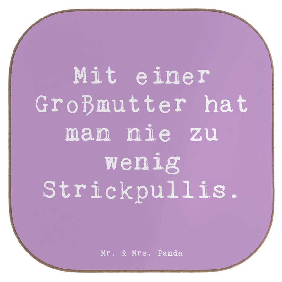 Ein wunderschöner quadratischer Untersetzer von Mr. & Mrs. Panda – bedruckt mit dem liebevollen Spruch „Mit einer Großmutter hat man nie zu wenig Strickpullis.“ Dieser Untersetzer ist das perfekte Geschenk für deine Oma: warmherzig, praktisch und dekorativ.