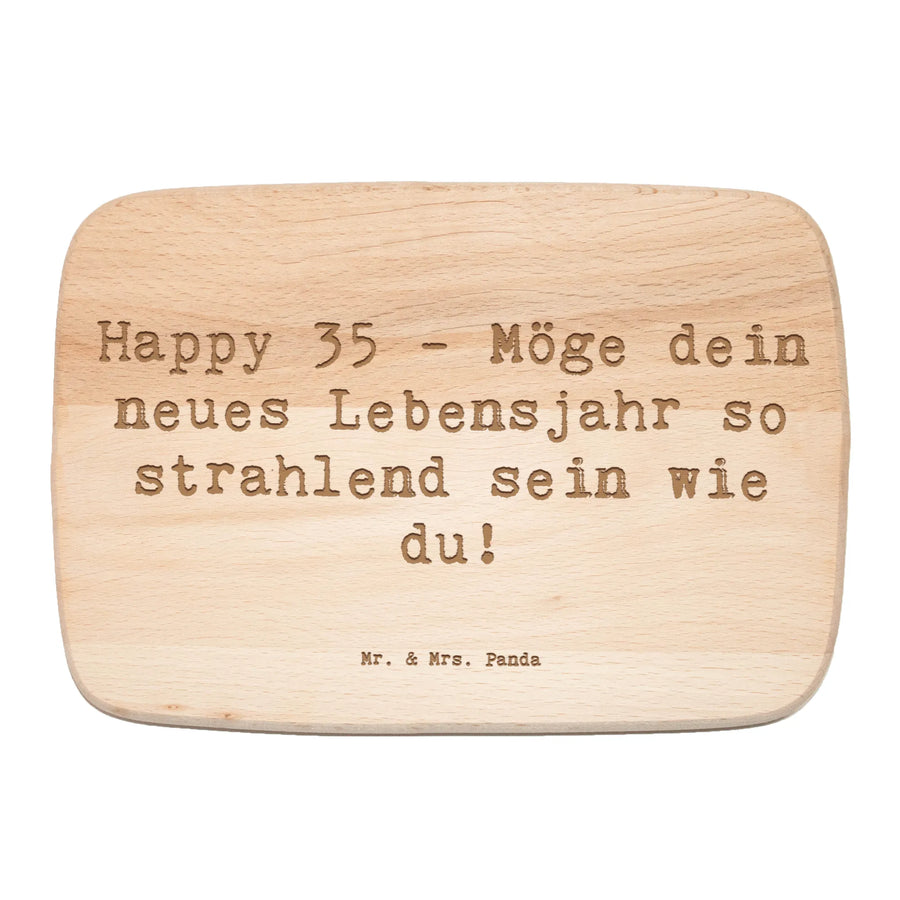 Wenn du auf der Suche nach einem besonderen Geschenk zum 35. Geburtstag bist, dann ist das Frühstücksbrett von Mr. & Mrs. Panda genau das Richtige für dich! Dieses einzigartige und edle Frühstücksbrett aus robustem Birkenholz wird mit einem liebevollen Spruch verziert, der perfekte Weg, um jemandem zu zeigen, wie viel er dir bedeutet. Die Gravur "Happy 35 - Möge dein neues Lebensjahr so strahlend sein wie du!" bringt das Herz eines jeden Geburtstagskindes zum Strahlen.
