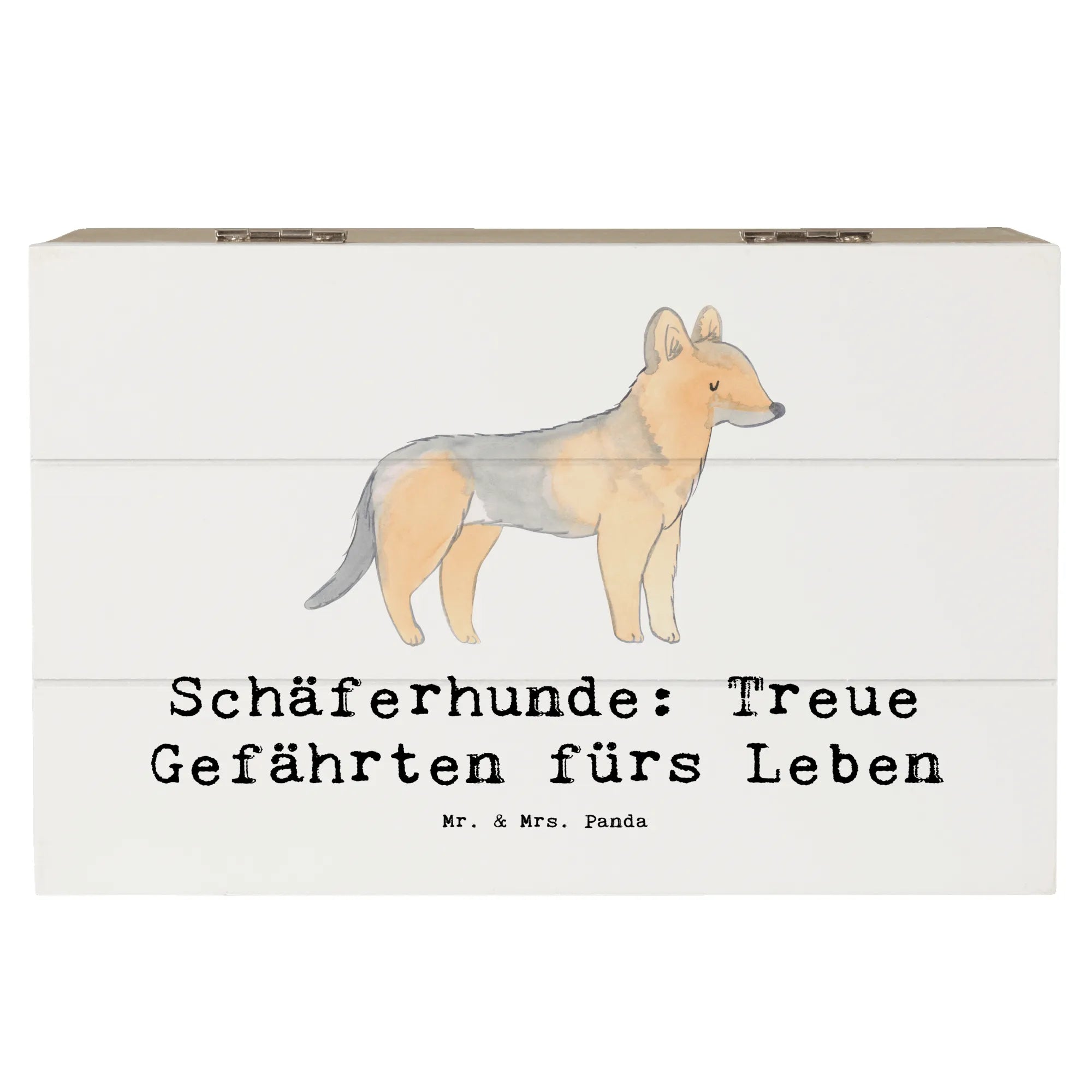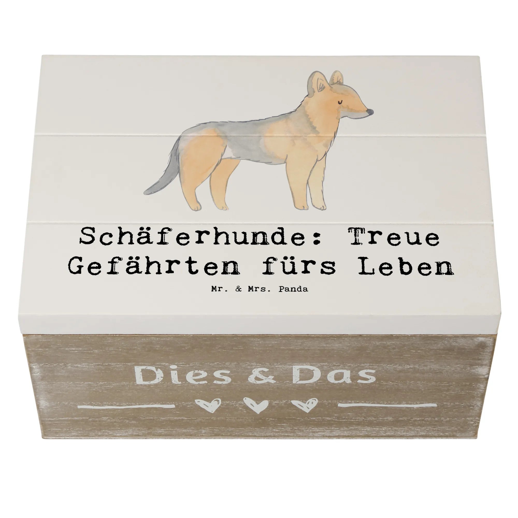 Die wunderschöne Holzkiste von Mr. & Mrs. Panda, bedruckt mit dem zauberhaften Motiv eines Schäferhundes und dem Spruch "Schäferhunde: Treue Gefährten fürs Leben", ist das perfekte Geschenk für alle Hundefreunde! Diese liebevoll gestaltete Erinnerungskiste eignet sich hervorragend, um Deine wertvollsten Schätze, Erinnerungen an besondere Momente oder Fotos sicher aufzubewahren.