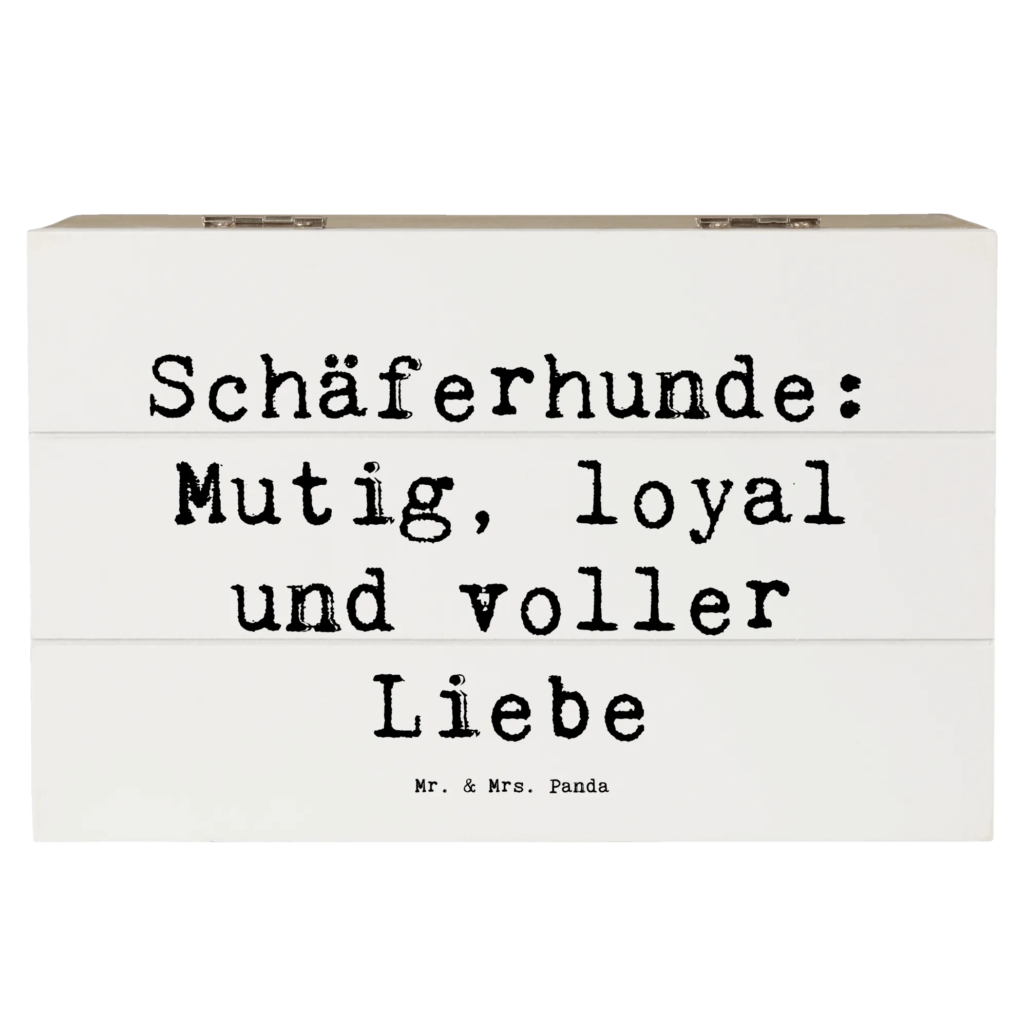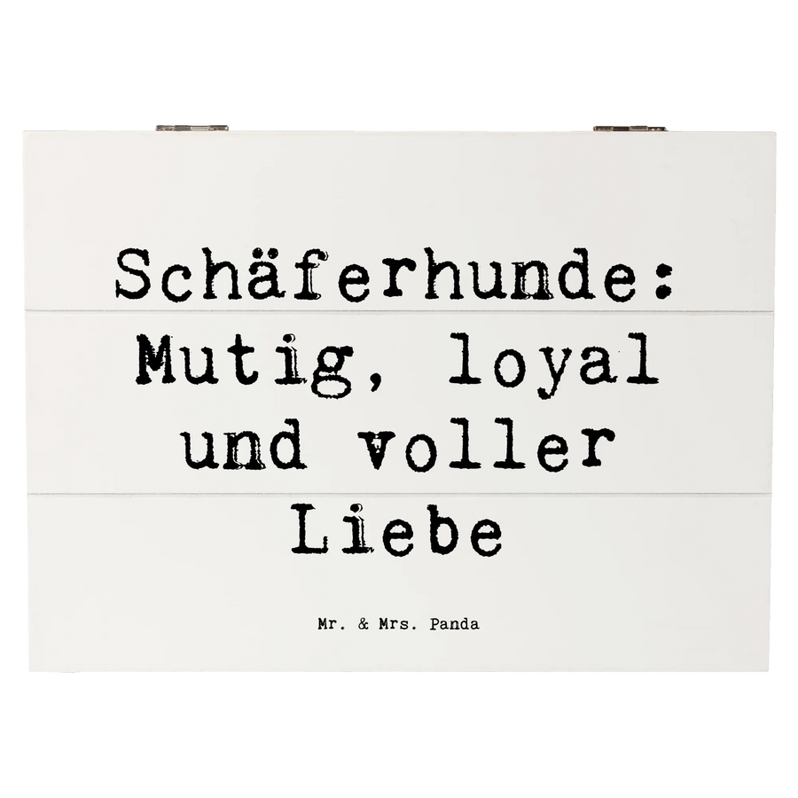 Die wunderschöne Holzkiste von Mr. & Mrs. Panda ist nicht nur ein praktischer Aufbewahrungsort, sondern auch ein liebevolles Geschenk für Hundeliebhaber. Mit ihrem zauberhaften Motiv des Schäferhundes und dem motivierenden Spruch „Schäferhunde: Mutig, loyal und voller Liebe“ bringt diese Kiste Freude in jedes Zuhause. Sie eignet sich perfekt als Erinnerungsbox für besondere Anlässe wie Kommunion, Konfirmation oder auch einfach zur Aufbewahrung von Herzensschätzen aus der Kindheit.
