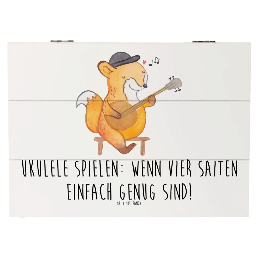 Die wunderschöne Holzkiste von Mr. & Mrs. Panda ist das perfekte Geschenk für Musikliebhaber und kreative Seelen. Mit ihrem fröhlichen Motiv der Ukulele, versehen mit dem liebevollen Spruch "Ukulele spielen: Wenn vier Saiten einfach genug sind!", bringt diese Kiste die Leichtigkeit und Freude des Musizierens in jeden Raum.