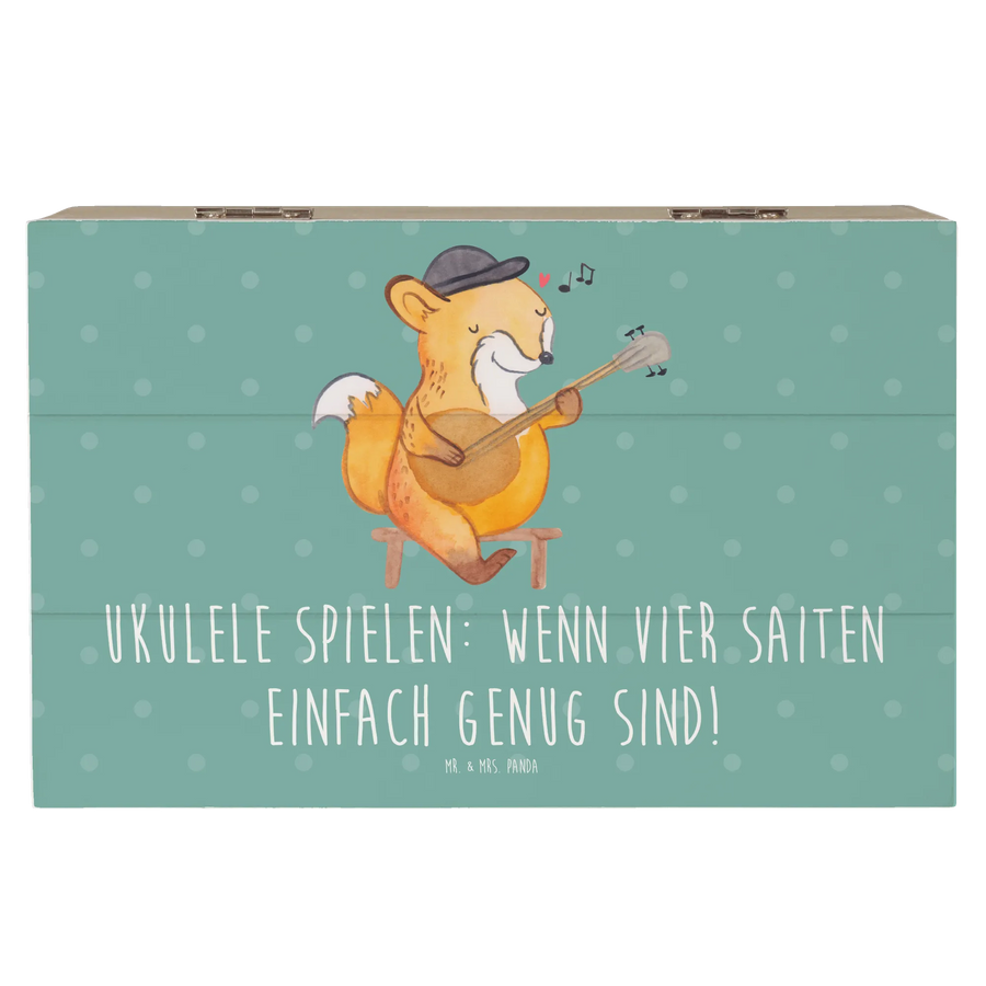 Die wunderschöne Holzkiste von Mr. & Mrs. Panda ist das perfekte Geschenk für Musikliebhaber und kreative Seelen. Mit ihrem fröhlichen Motiv der Ukulele, versehen mit dem liebevollen Spruch "Ukulele spielen: Wenn vier Saiten einfach genug sind!", bringt diese Kiste die Leichtigkeit und Freude des Musizierens in jeden Raum.