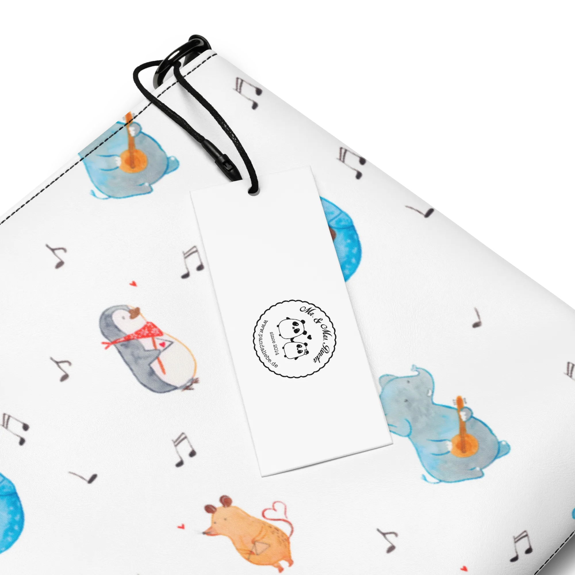 Mit der liebevoll gestalteten Handtasche "Big Band" aus der Small World Kollektion trägst du ein fröhliches Statement mit dir. Das Motiv zeigt eine kleine, beschwingte Band aus Pinguin, Maus, Delfin und Elefant, die mit Gitarre, Triangel und viel Herz die schönsten Melodien spielt. Dieses Design bringt gute Laune in deinen Alltag und passt sowohl zum Konzertbesuch als auch zur Einkaufsrunde oder zum gemütlichen Abend mit Freundinnen.