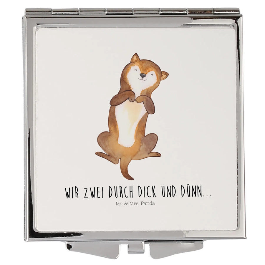 Handtaschenspiegel quadratisch Hund Streicheln - mit Spruch - Weiß