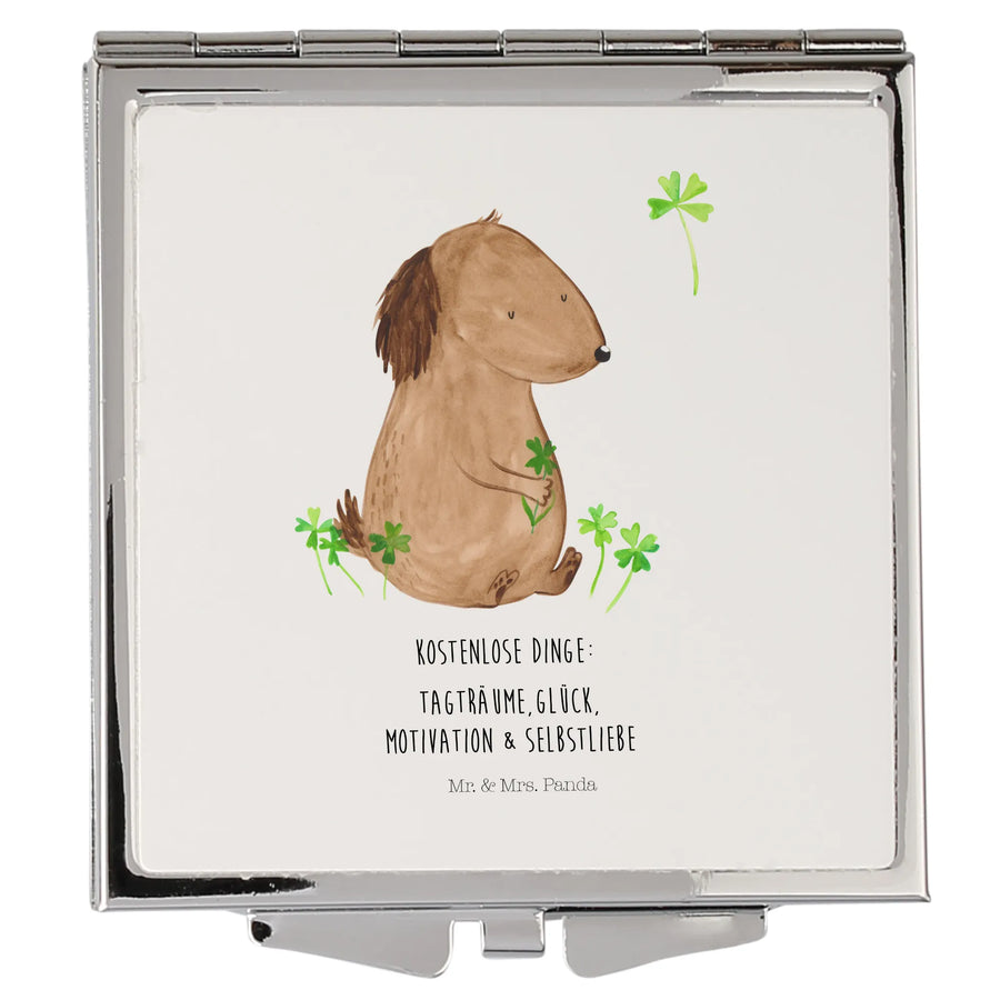 Handtaschenspiegel quadratisch Hund Kleeblatt - mit Spruch - Weiß