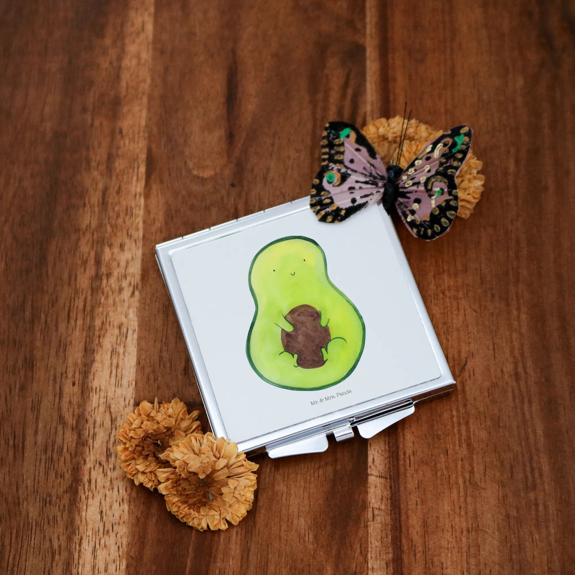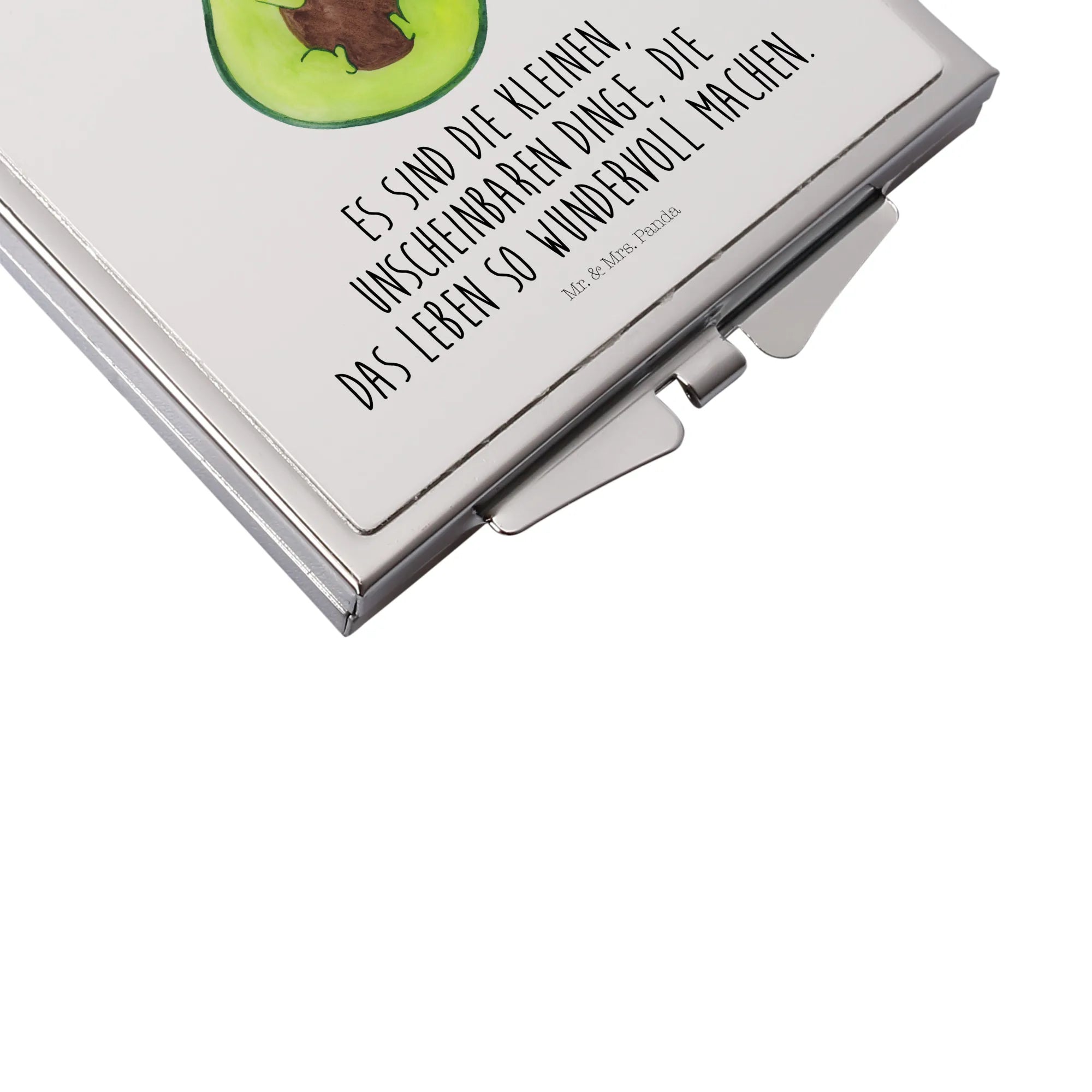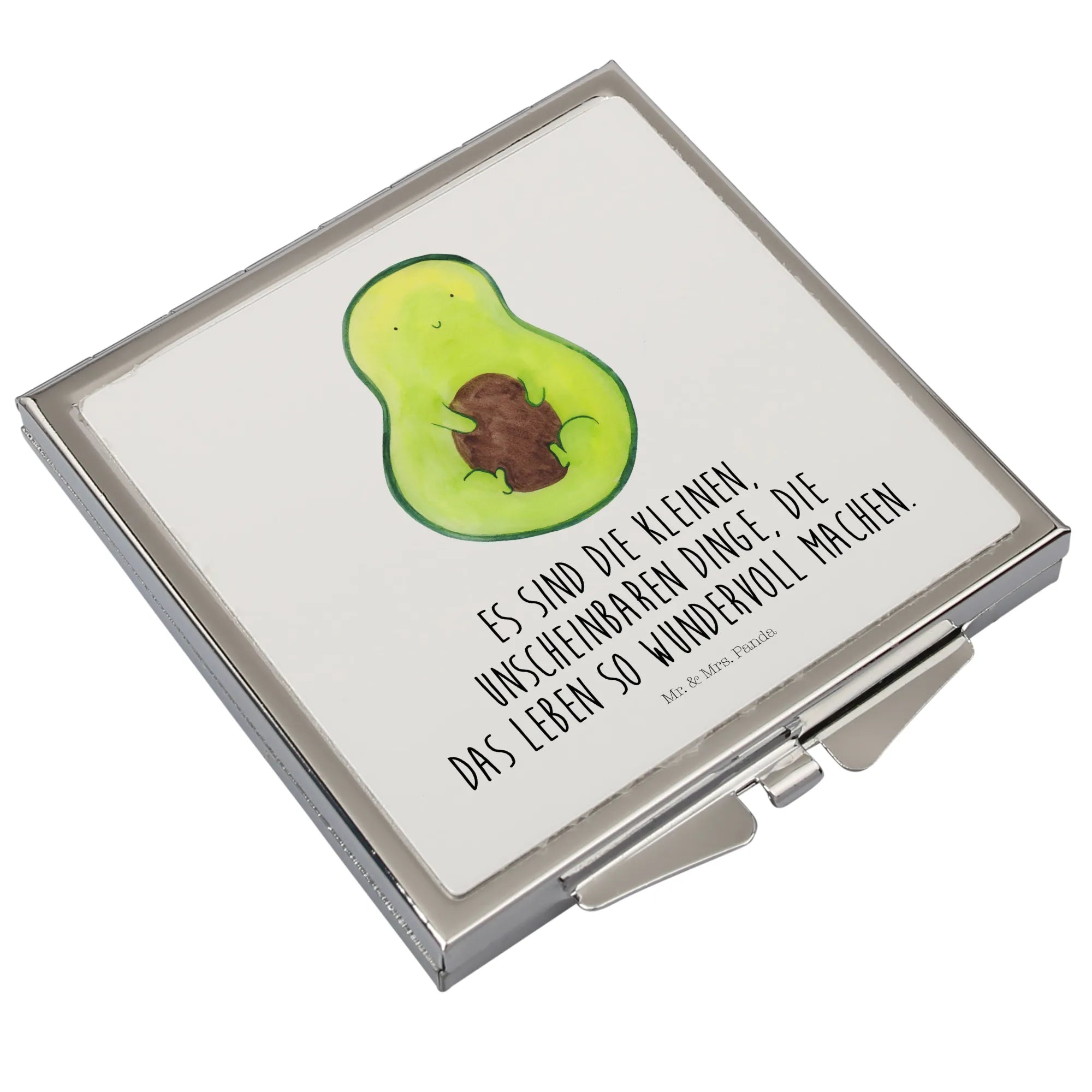 Der Handtaschenspiegel quadratisch mit dem süßen Motiv Avocado mit Kern von Mr. & Mrs. Panda ist das perfekte Geschenk für alle, die Gesundheit und Lebensfreude lieben! 🥑🌱 Dieser edle, in praktischem Design gestaltete Spiegel ist nicht nur unglaublich nützlich, sondern auch ein toller Begleiter für jeden Tag. Die quadratische Form und die kompakten Maße von 60 mm x 60 mm x 8 mm machen diesen Spiegel zum idealen Accessoire für jede Handtasche oder den Rucksack. Die hochwertige Glasplatte mit Aluminium-Beschichtung sorgt für eine klare Reflexion, während die edle Versilberung am Rand dem Spiegel einen ganz besonderen Glanz verleiht.