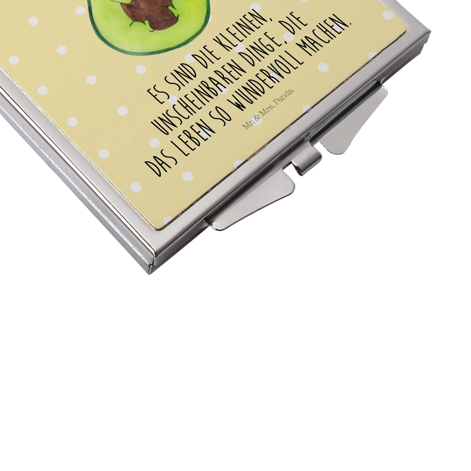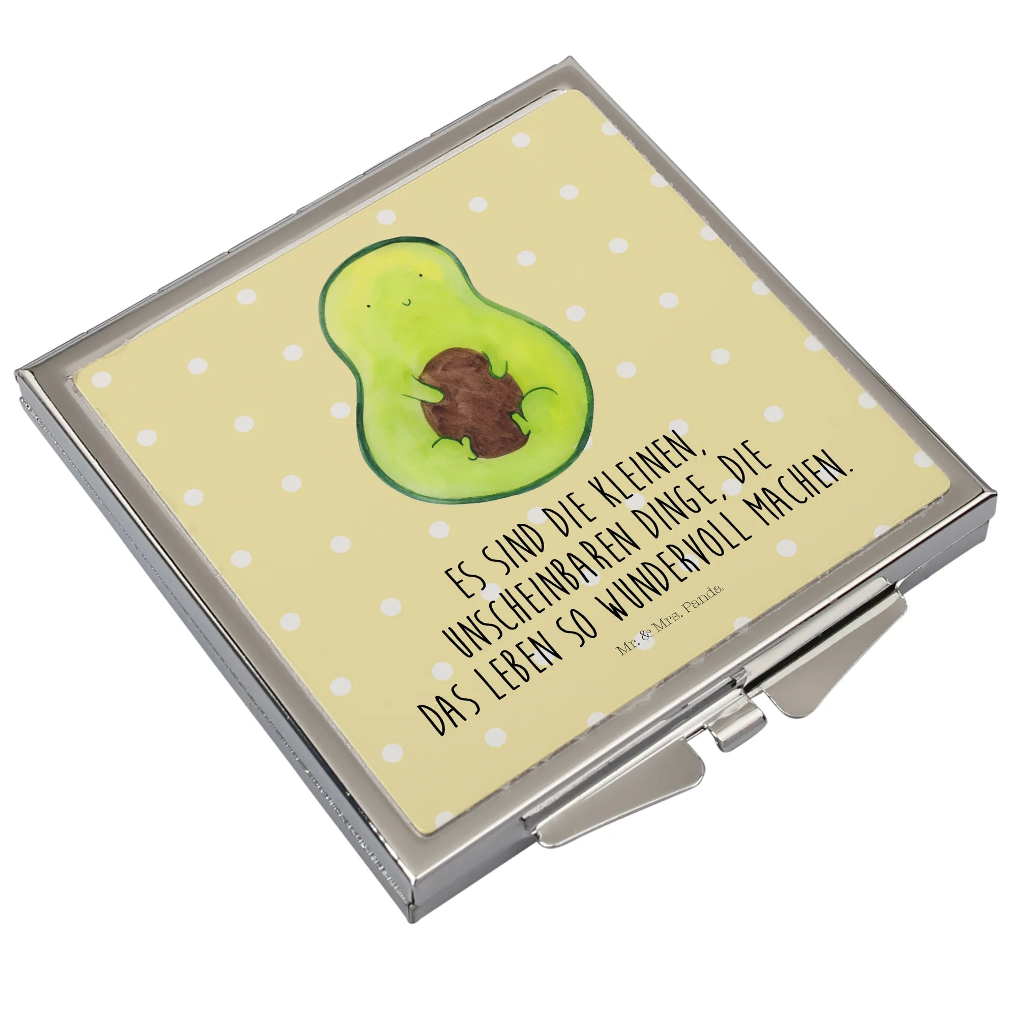 Handtaschenspiegel quadratisch Avocado Kern - mit Spruch - Gelb Pastell