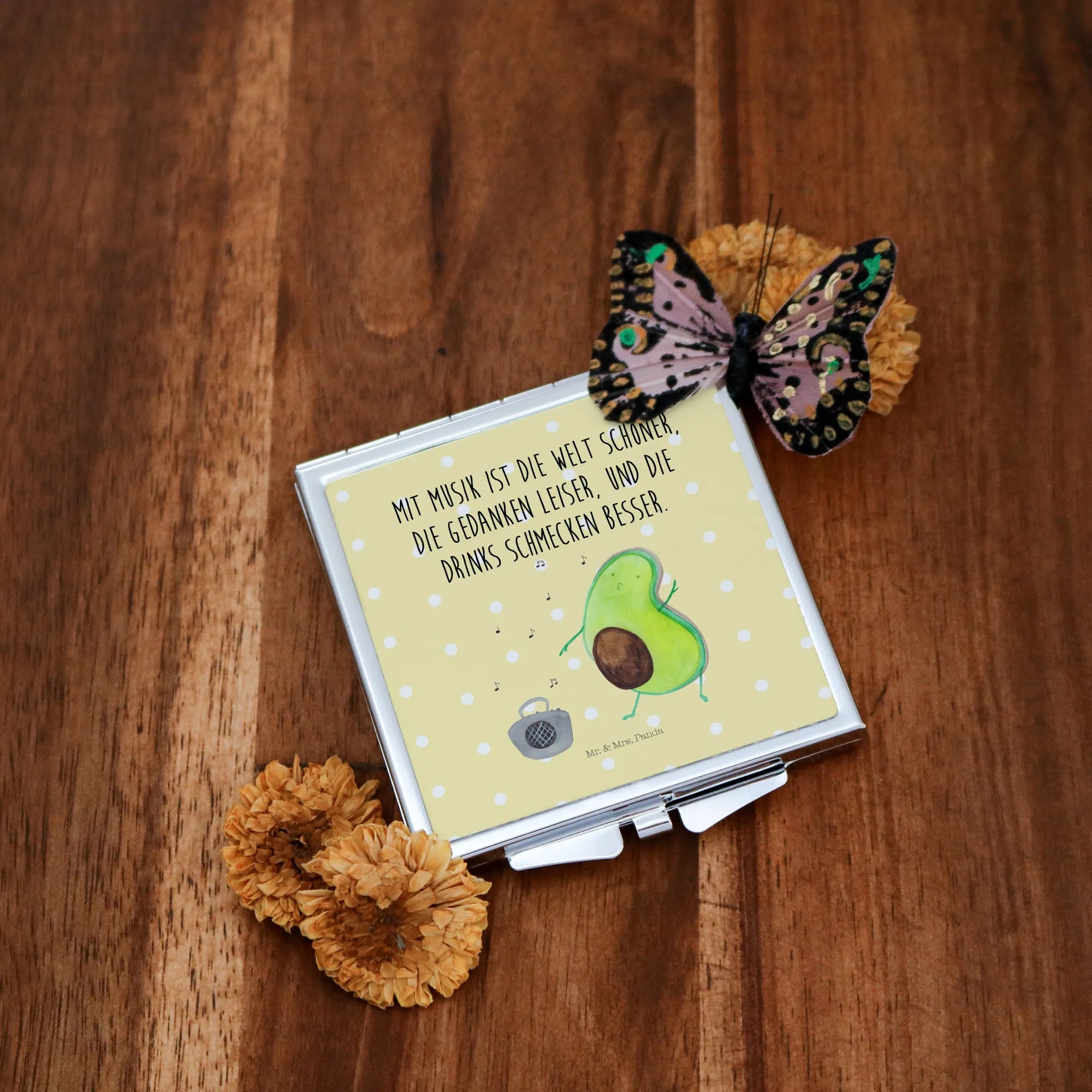 Handtaschenspiegel quadratisch Avocado tanzt - mit Spruch - Weiß