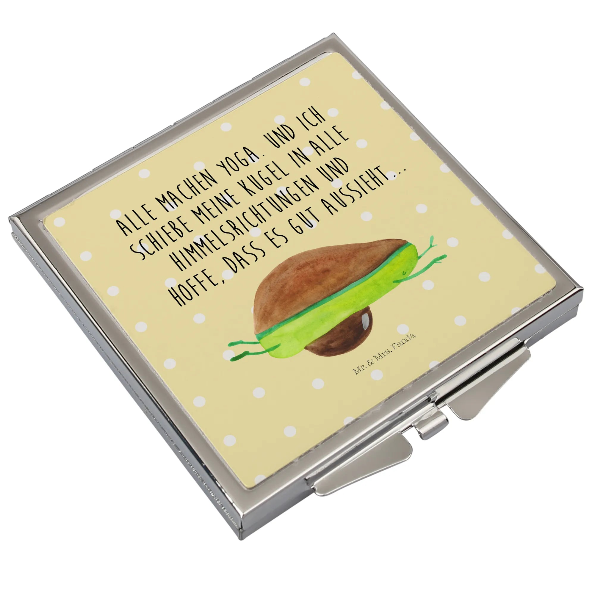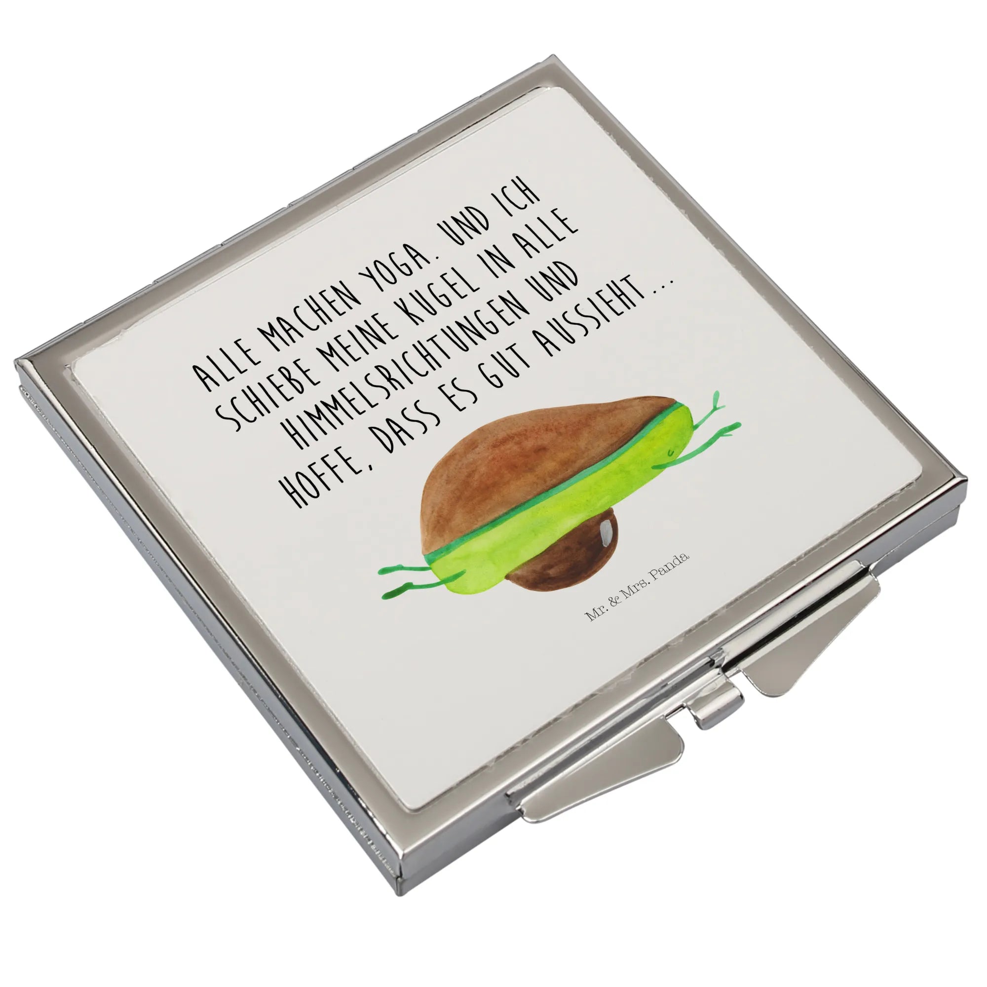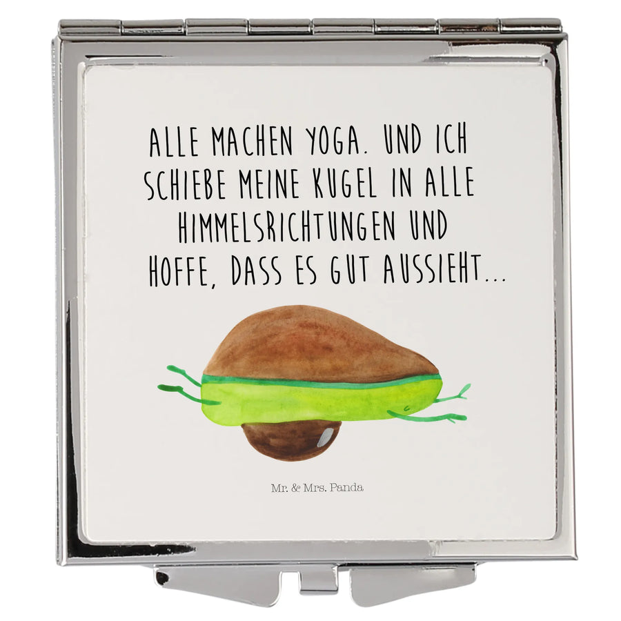 Handtaschenspiegel quadratisch Avocado Yoga - mit Spruch - Weiß
