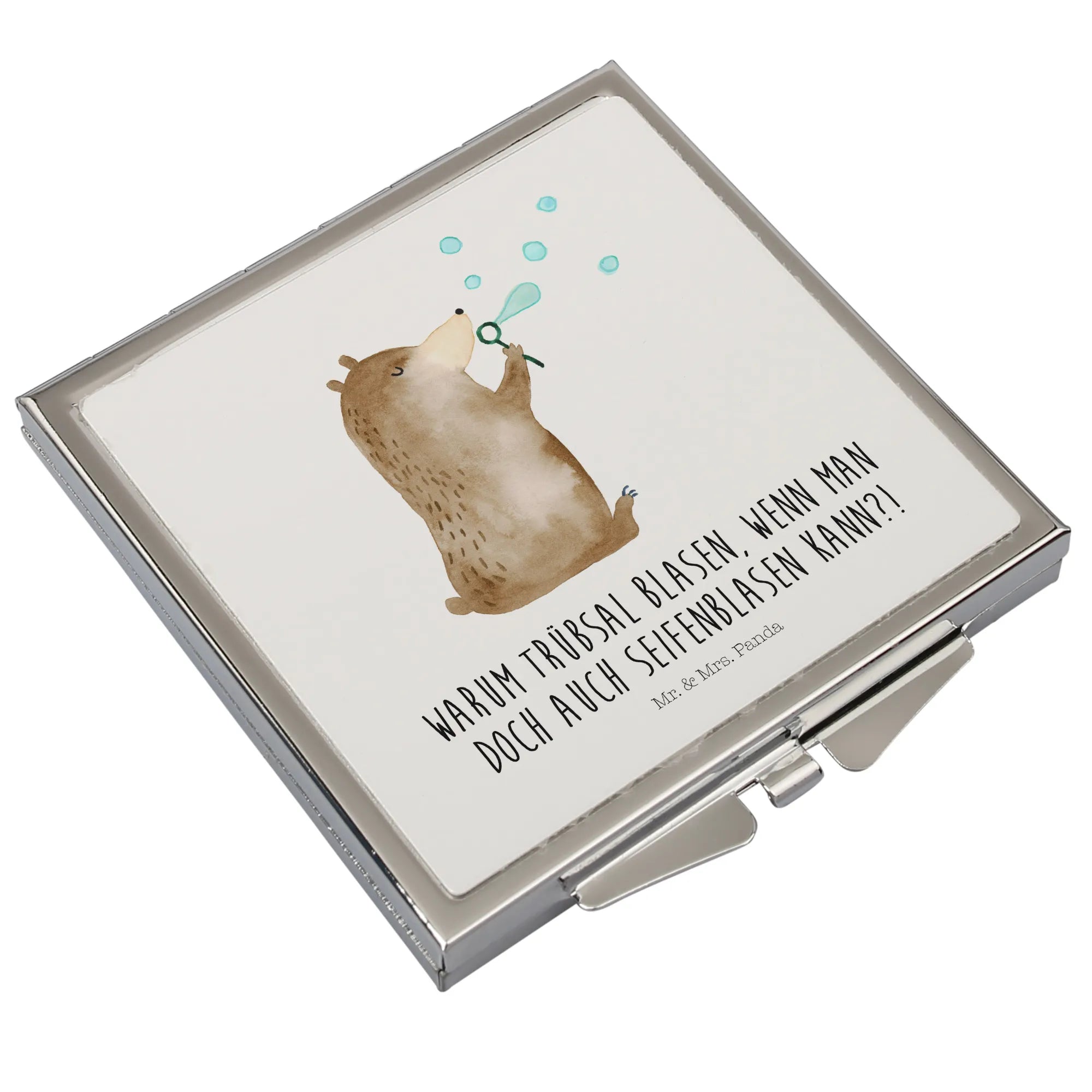 Handtaschenspiegel quadratisch Bär Seifenblasen – Mr. & Mrs. Panda