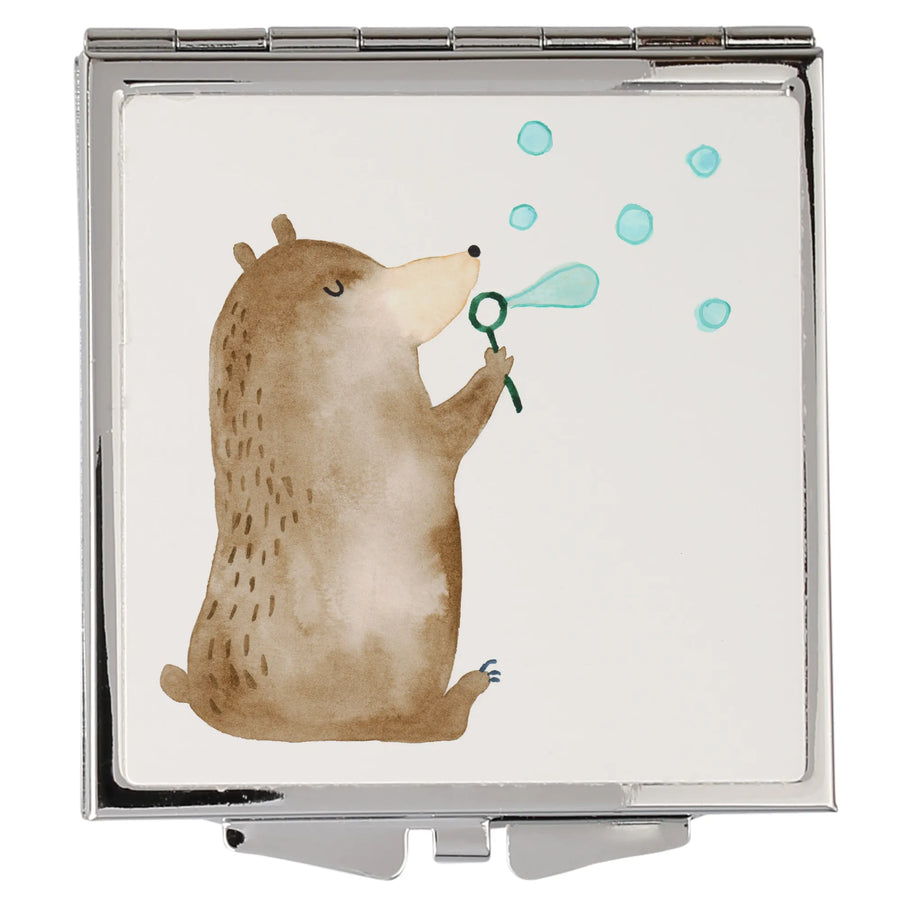 Handtaschenspiegel quadratisch Bär Seifenblasen - ohne Spruch - Weiß