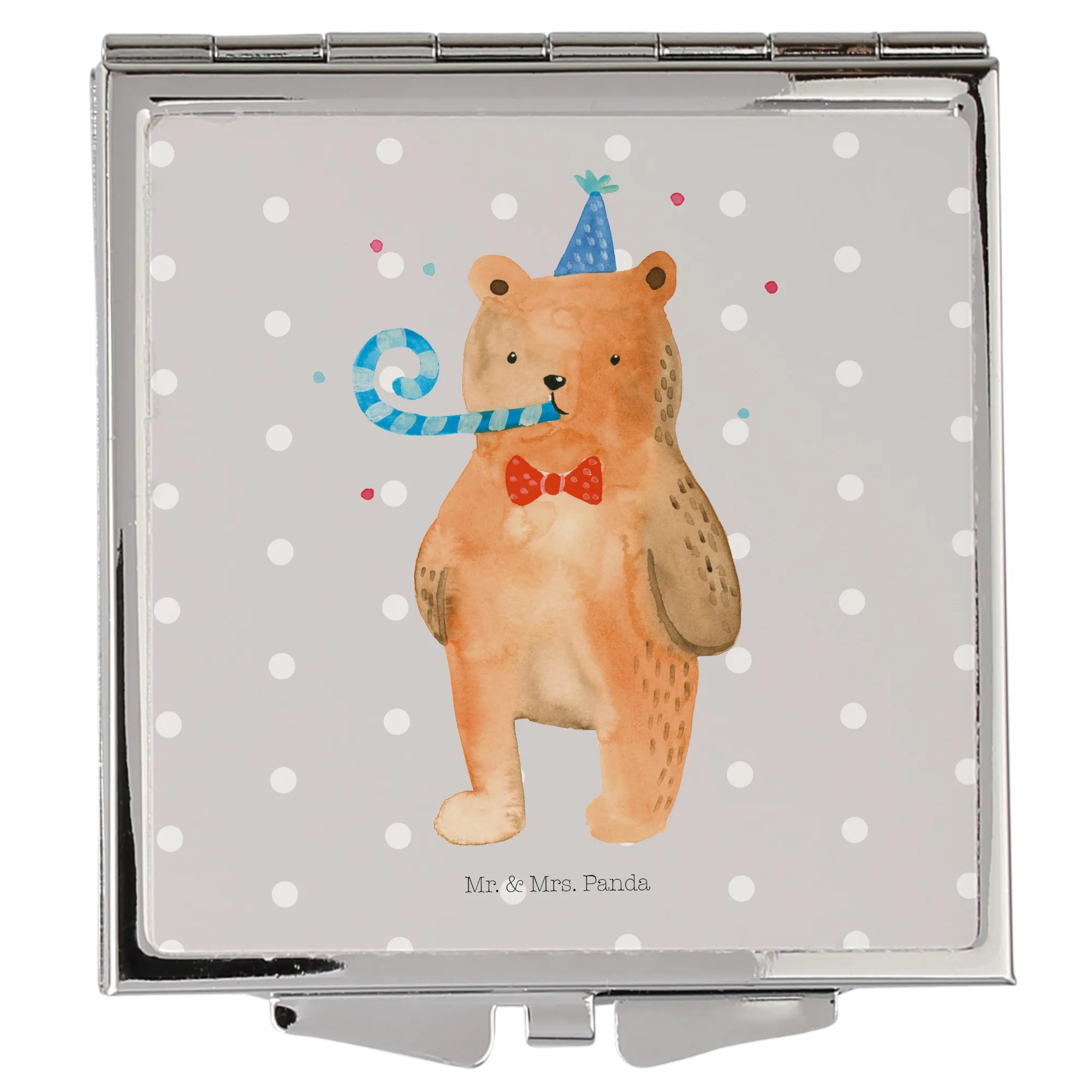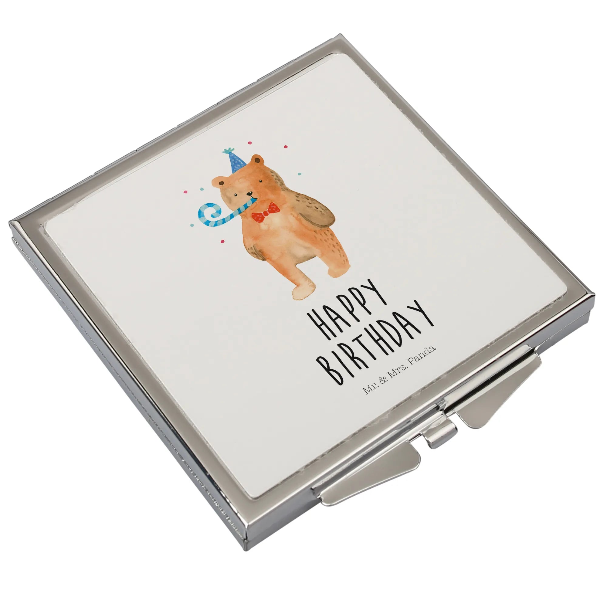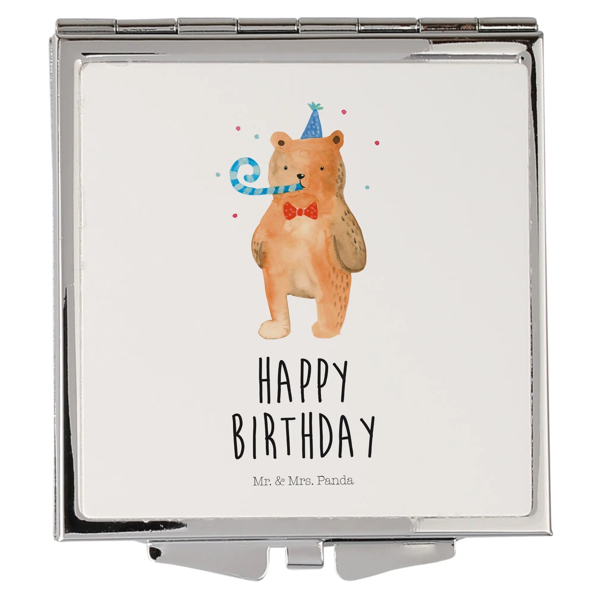 Handtaschenspiegel quadratisch Birthday Bär - mit Spruch - Weiß