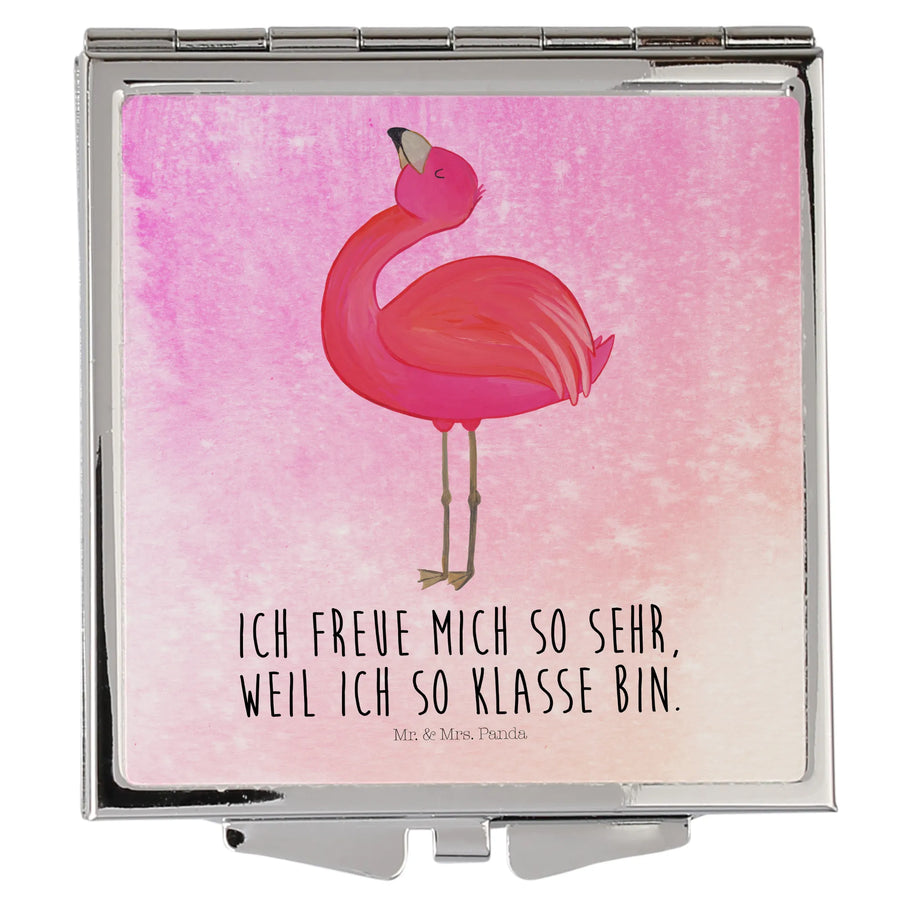 Handtaschenspiegel quadratisch Flamingo Stolz - mit Spruch - Aquarell Pink