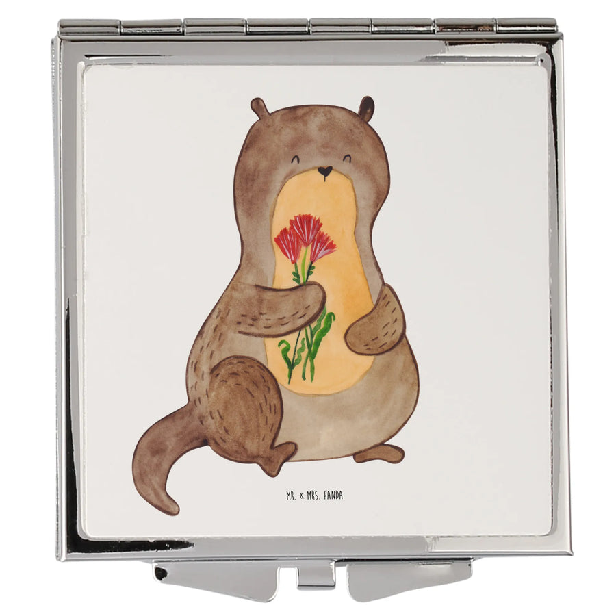 Handtaschenspiegel quadratisch Otter Blumenstrauß - ohne Spruch - Weiß