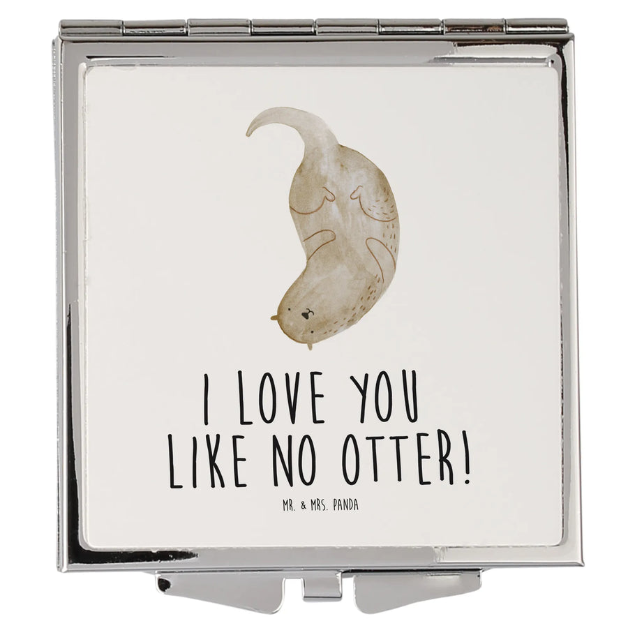 Handtaschenspiegel quadratisch Otter Kopfüber - mit Spruch - Weiß