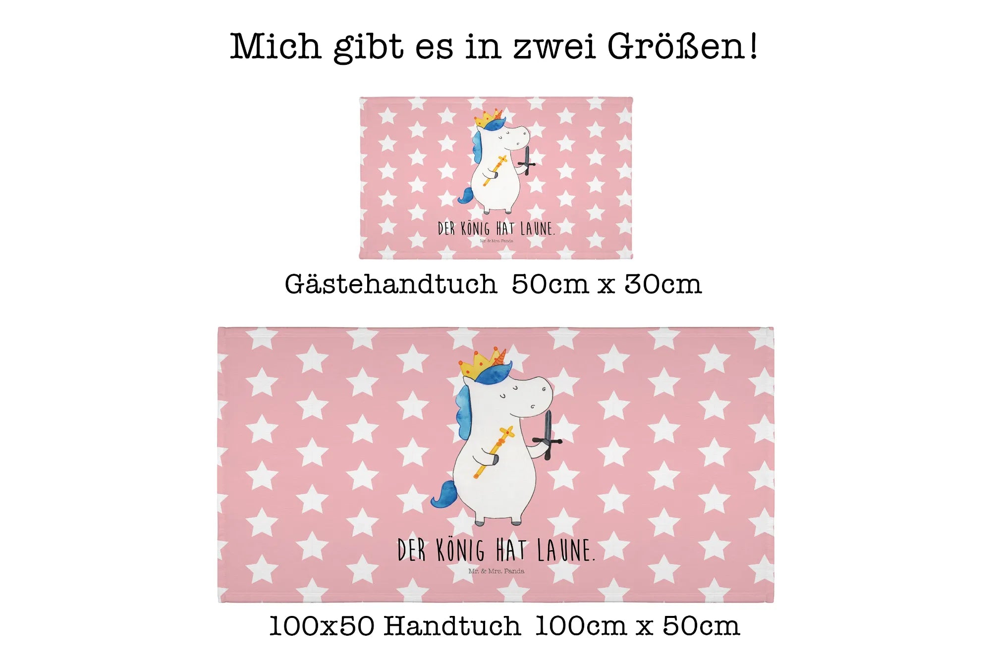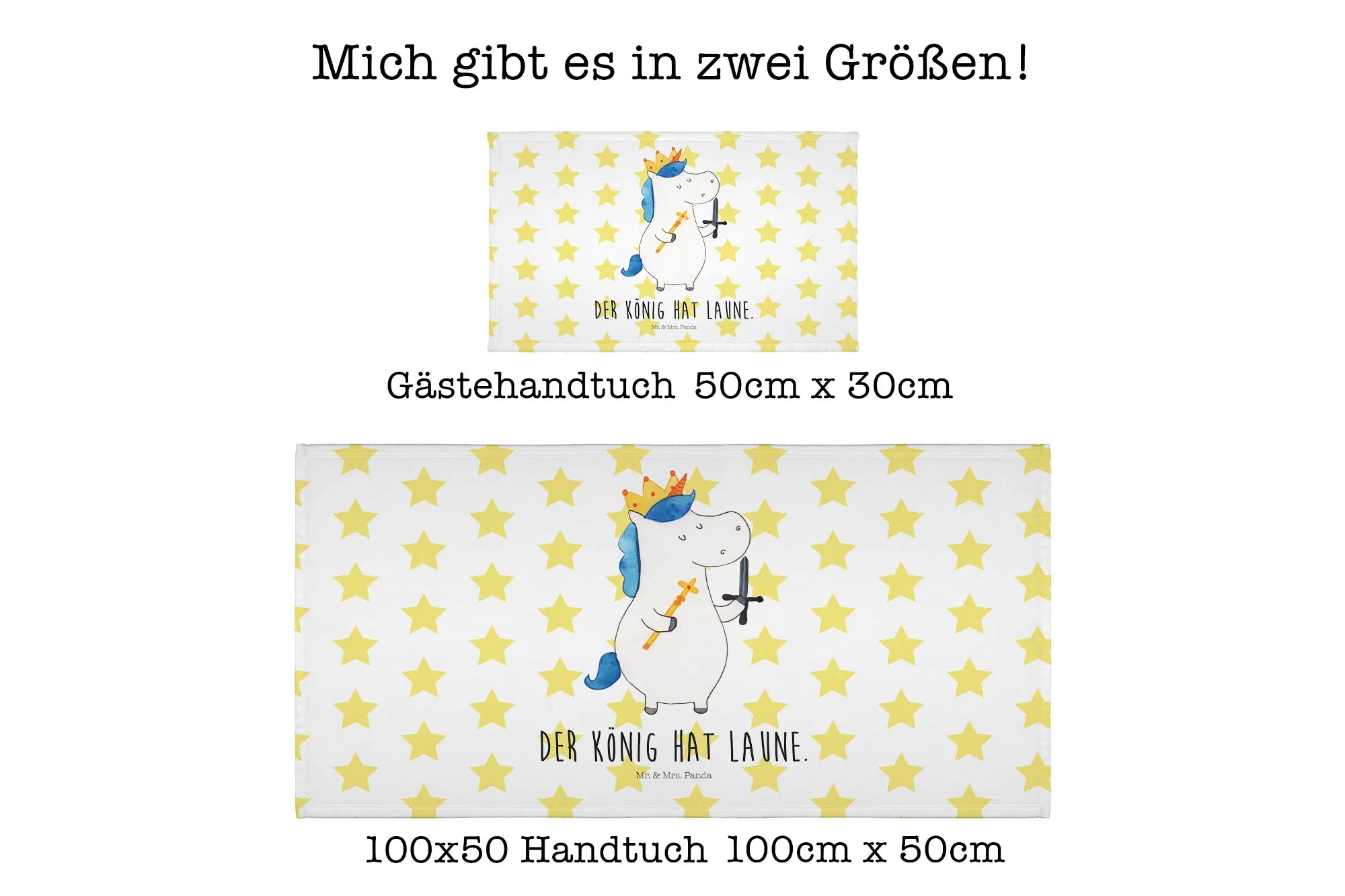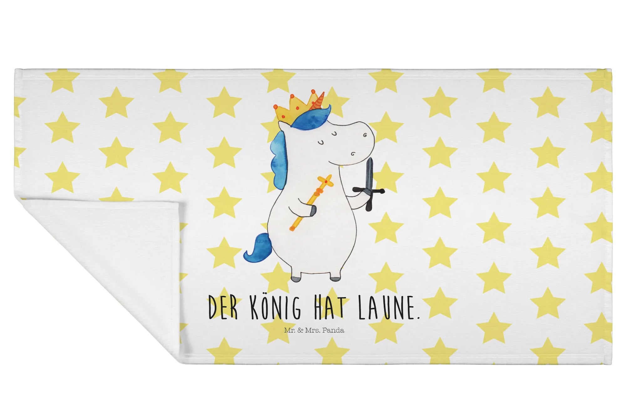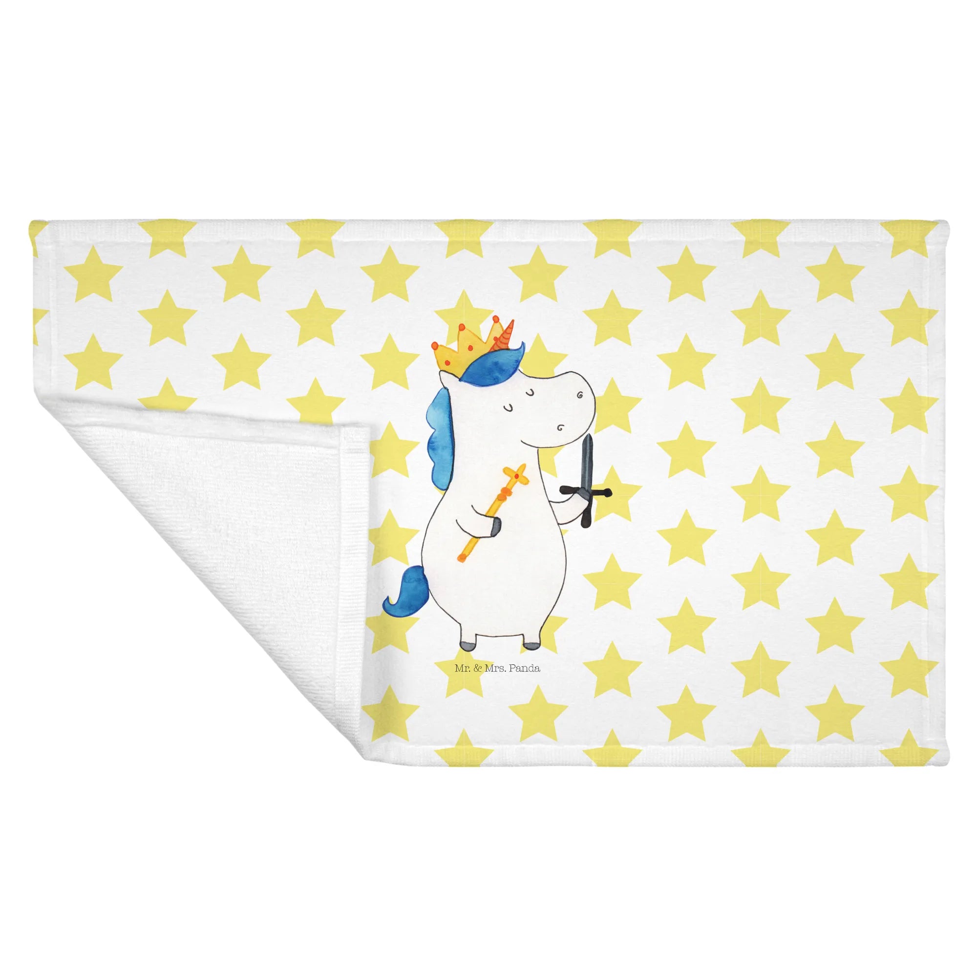 Das perfekte Gästehandtuch von Mr. & Mrs. Panda mit dem einzigartigen Motiv Einhorn König mit Schwert bringt ein Stück Zauber in dein Badezimmer. Egal, ob du nach einem süßen Geschenk für dein Kind suchst oder vielleicht ein besonderes Mitbringsel für eine Freundin benötigst – dieses Handtuch ist einfach ideal! Flauschig und bunt bedruckt, mit strahlenden Farben wird es jedes Gästebad verschönern und Freude verbreiten.