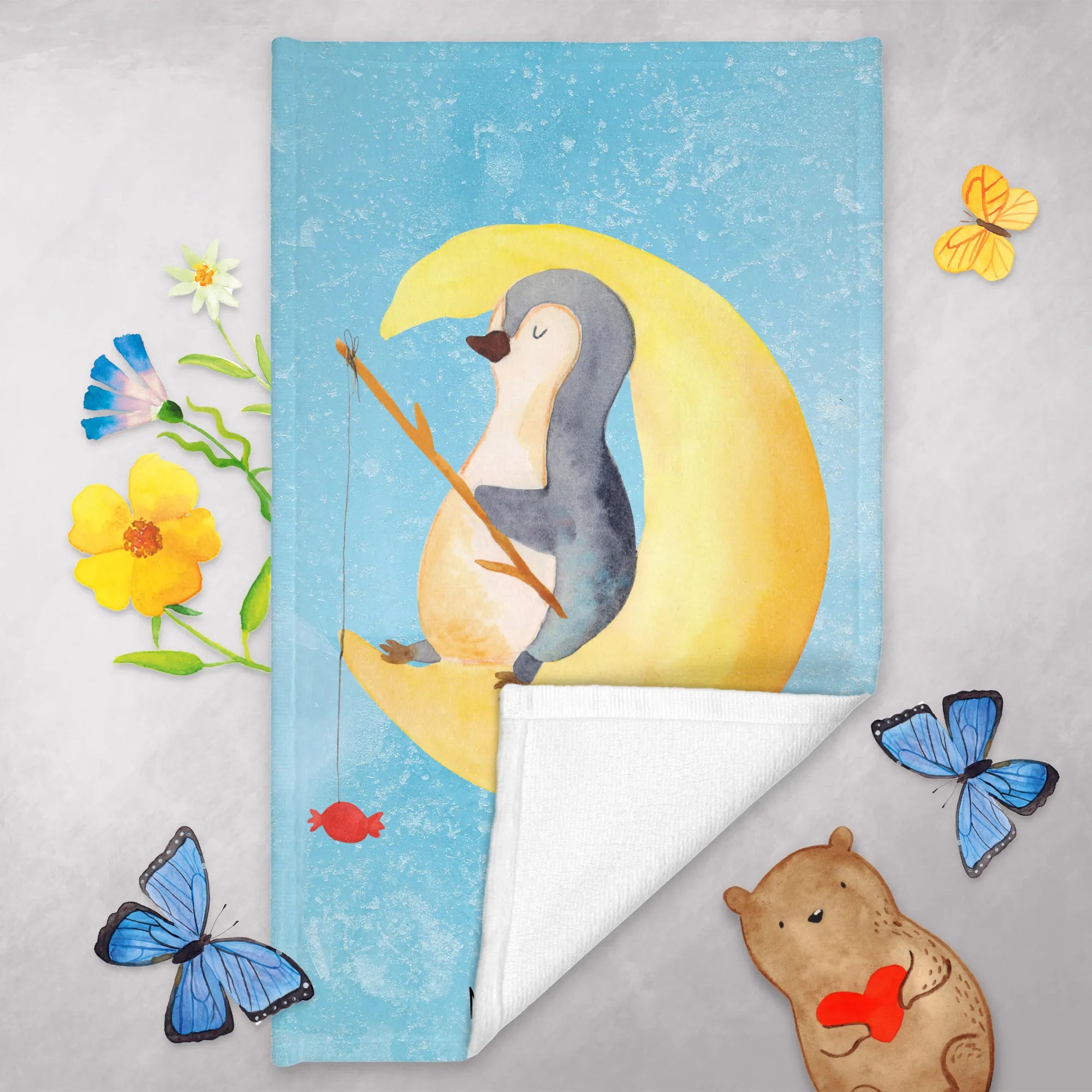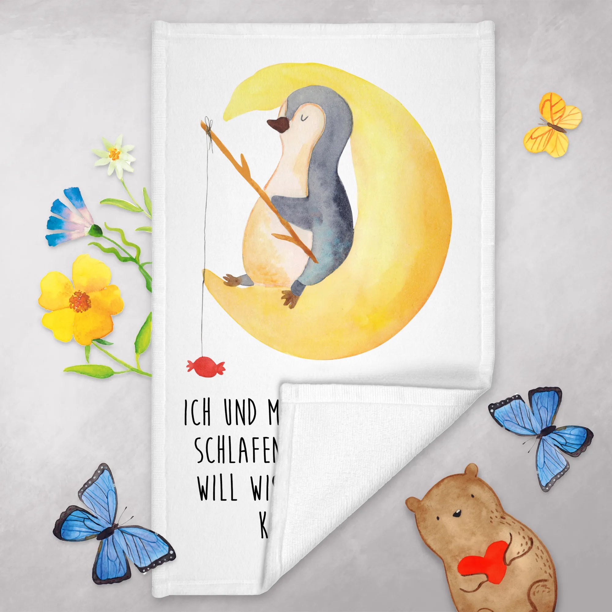 Mache deinen Gästen eine Freude und wähle das Pinguin Mond Gästehandtuch von Mr. & Mrs. Panda – es wird ihnen sicher beim Entspannen in deinem Heim helfen und für viele Lacher sorgen!