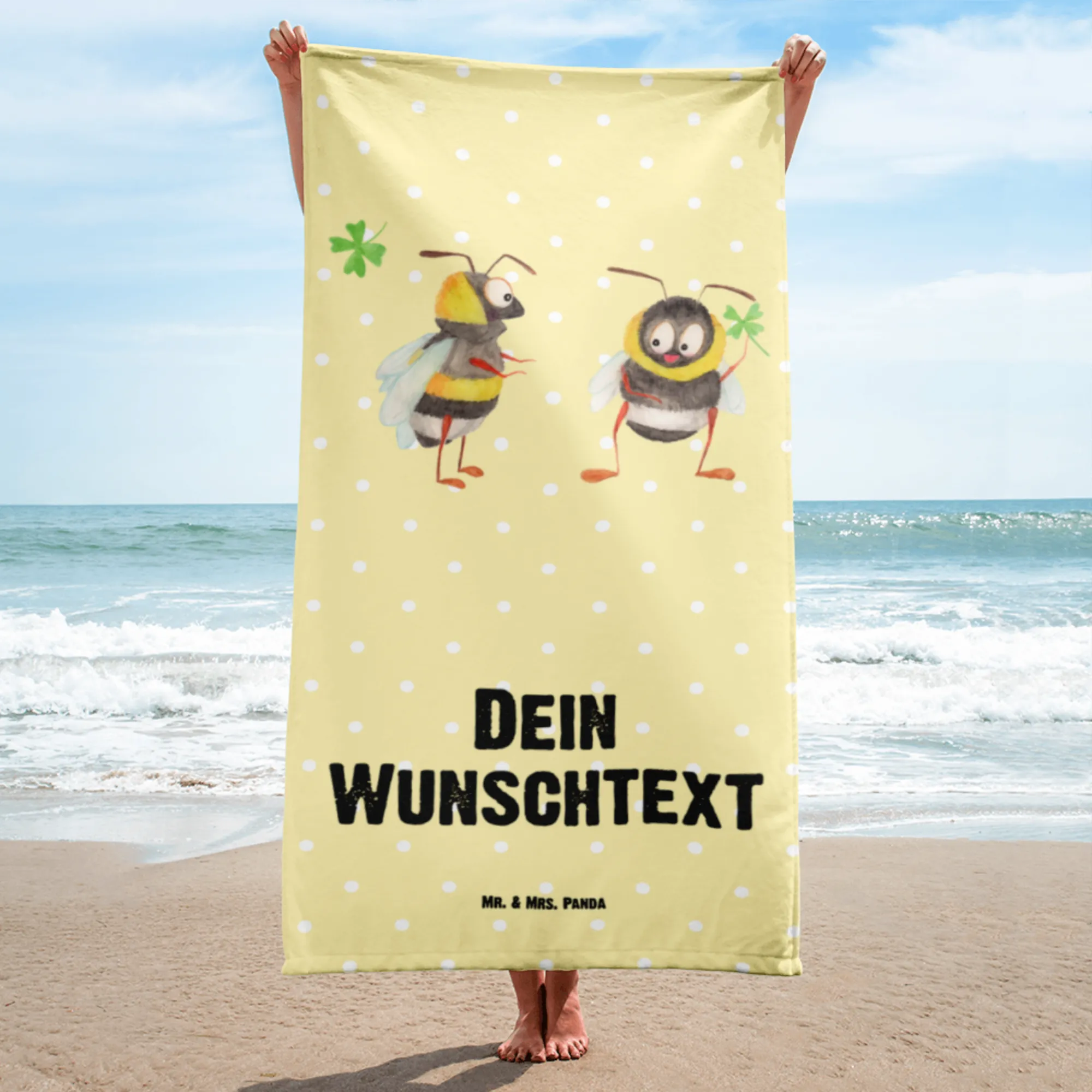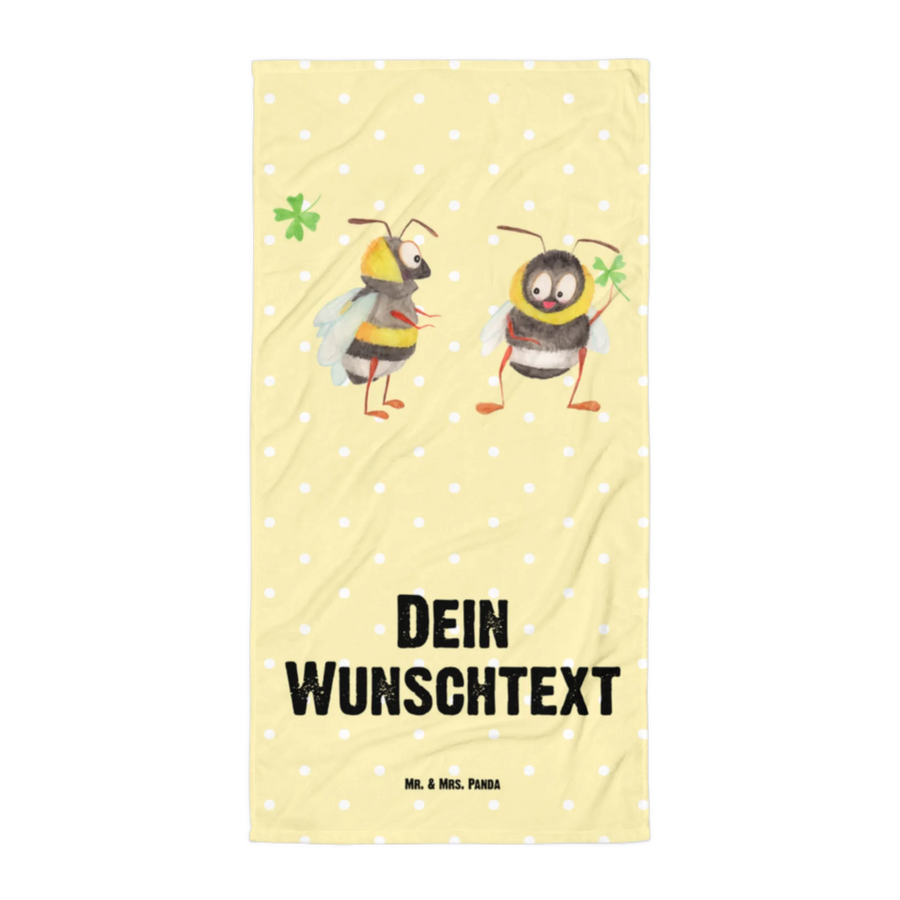 Das personalisierte Handtuch mit Hummeln und Kleeblatt von Mr. & Mrs. Panda ist das perfekte Geschenk für all jene, die Freude am Leben und an schönen Dingen haben. Mit seinen bunten Farben und dem liebevollen Design bringt es gute Laune ins Badezimmer, ans Schwimmbad oder in die Sauna. Besonders schön finden wir, dass Du es ganz individuell mit Deinem Wunschnamen personalisieren kannst!