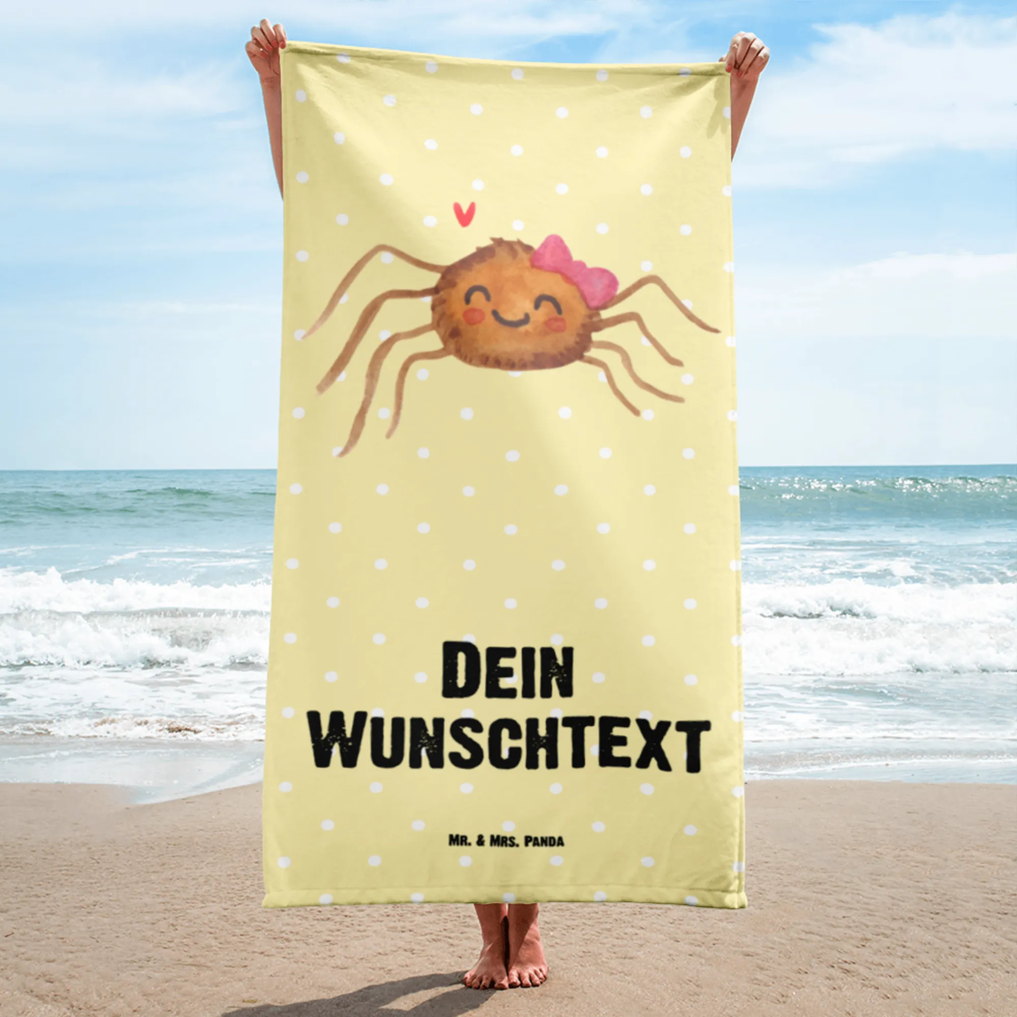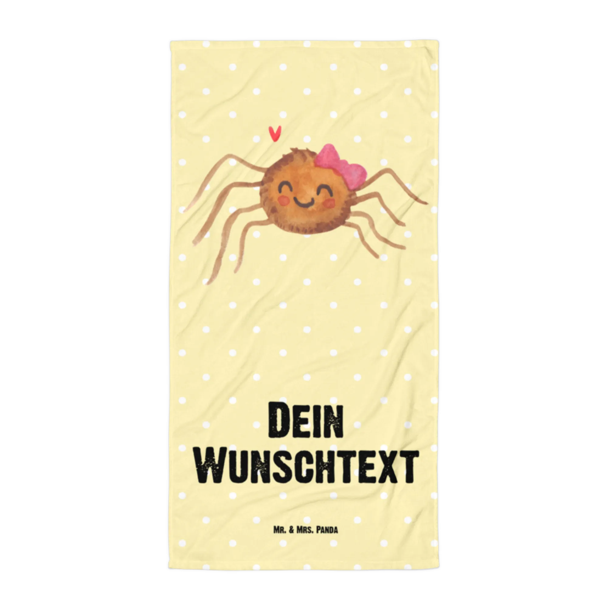 Das Highlight? Du kannst dein Handtuch ganz individuell gestalten! Wähle deinen Wunschnamen aus und bringe ein Stückchen Persönlichkeit in dein Badetuch. Der liebevolle Druck, der die bezaubernde Spinne Agathe zeigt, ist ein wahrer Hingucker. Ihr charmantes Lächeln und das kleine Herzchen bringen sofort gute Laune – egal ob beim Sonnenbaden am Strand oder im Wellnessbereich der Sauna. Agathe verkörpert Lebensfreude pur und wird auch dich verzaubern!