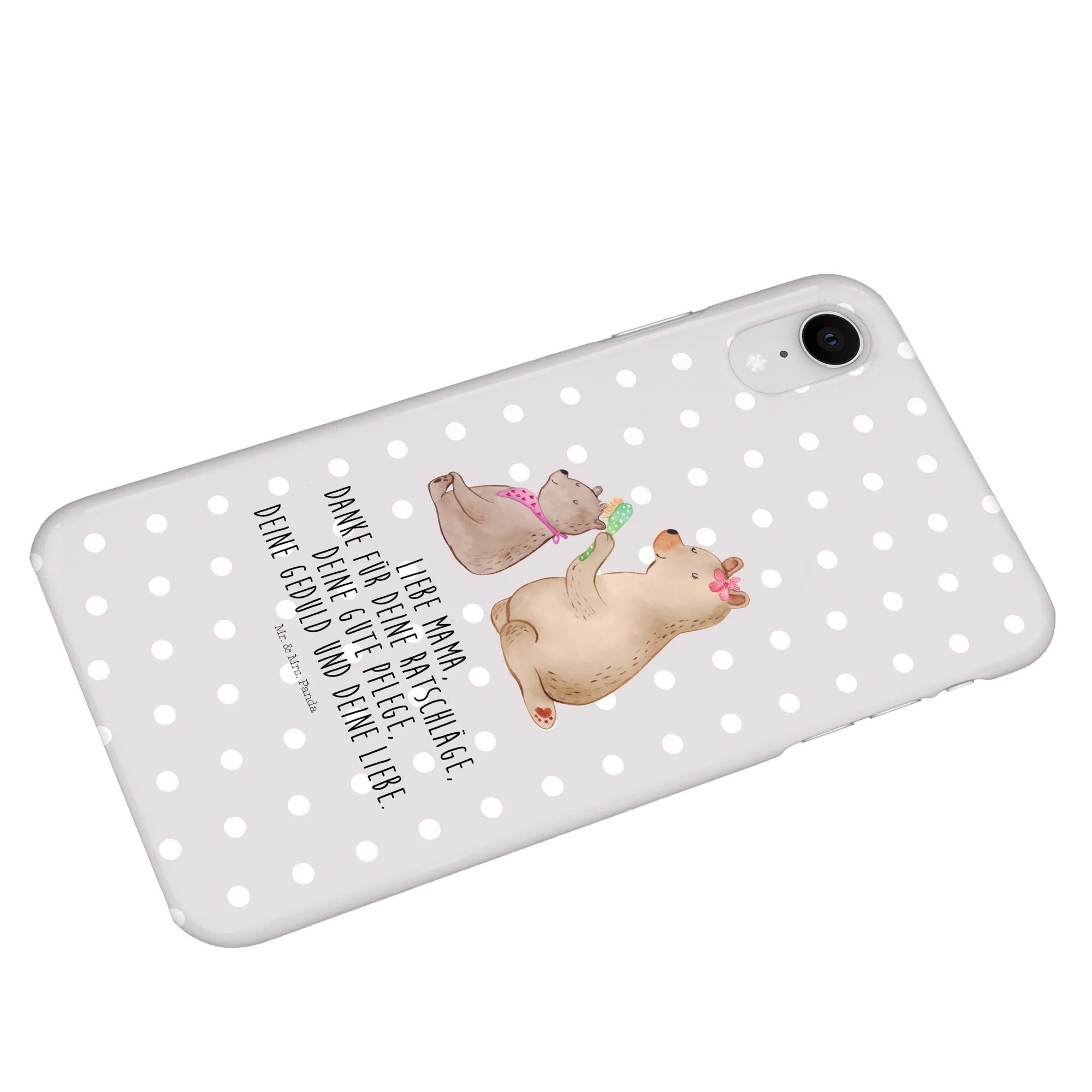 Liebevoll, praktisch und perfekt als Geschenk: Die iPhone XR Handyhülle von Mr. & Mrs. Panda mit dem Motiv "Bär mit Kind" vereint Zärtlichkeit und Alltagsnutzen. Das handgezeichnete Aquarellmotiv zeigt einen großen Bären, der liebevoll das Fell des kleinen Bären kämmt – ein Bild voller Geborgenheit, ideal als Geschenk zum Muttertag oder Geburtstag für Mama.