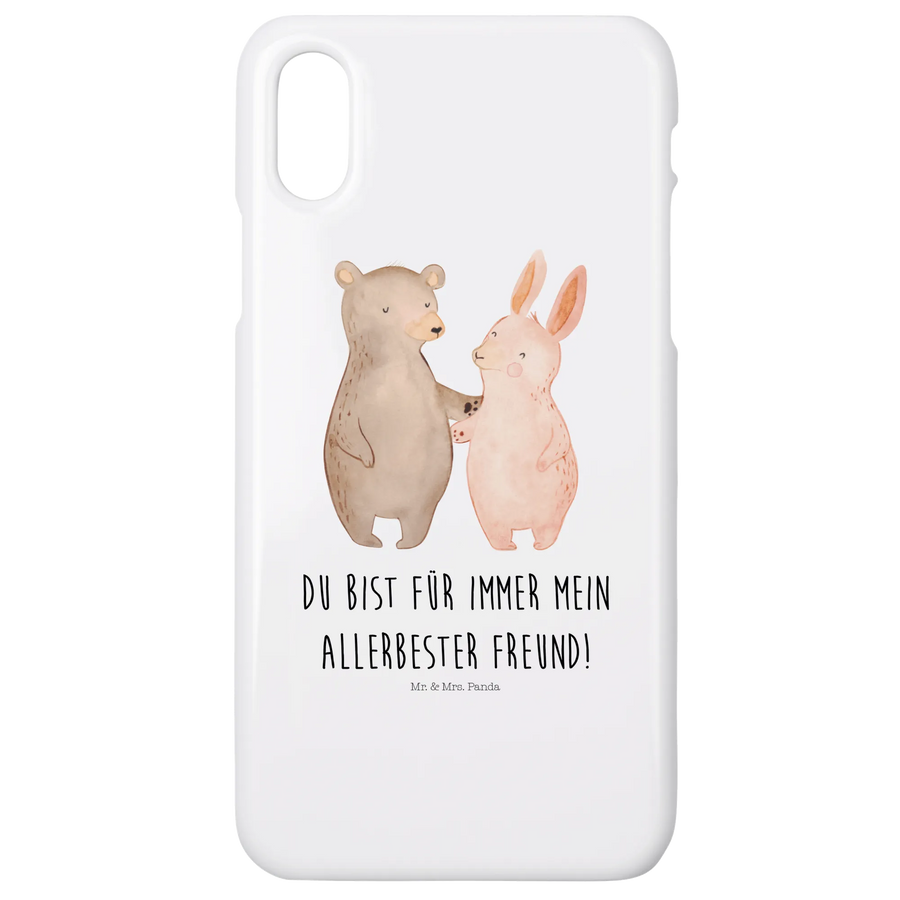 Handyhülle Bär und Hase Umarmen - Iphone 10 Handyhülle - mit Spruch - Weiß