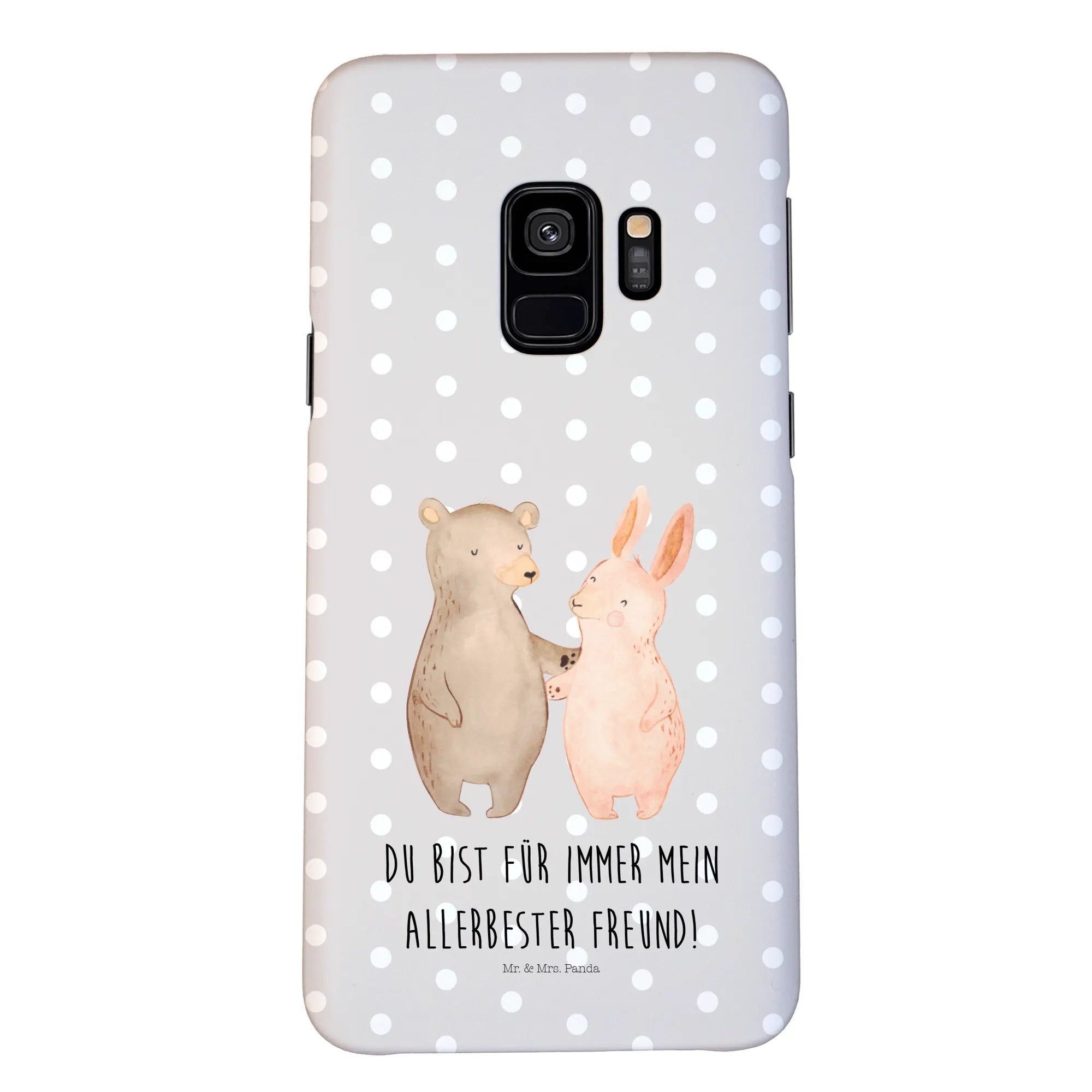 Entdecke die perfekte Samsung Galaxy S9 Handyhülle mit dem zauberhaften Motiv Bär Hase Umarmen aus der wunderschönen Liebe Kollektion von Mr. & Mrs. Panda. Diese liebevolle Hülle ist nicht nur ein Schutz für dein Smartphone, sondern auch ein wunderbares Geschenk für all jene, die besonderen Wert auf Freundschaft und Liebe legen. Das Motiv zeigt einen süßen Bären, der seinen besten Freund, den Hasen, umarmt – ein Bild, das Wärme und Zuneigung ausstrahlt. Auf dieser Schutzhülle wird der herzliche Spruch 'Du bist für immer mein allerbester Freund!' verewigt, der jedem guten Freund oder geliebten Menschen ein Lächeln ins Gesicht zaubert.