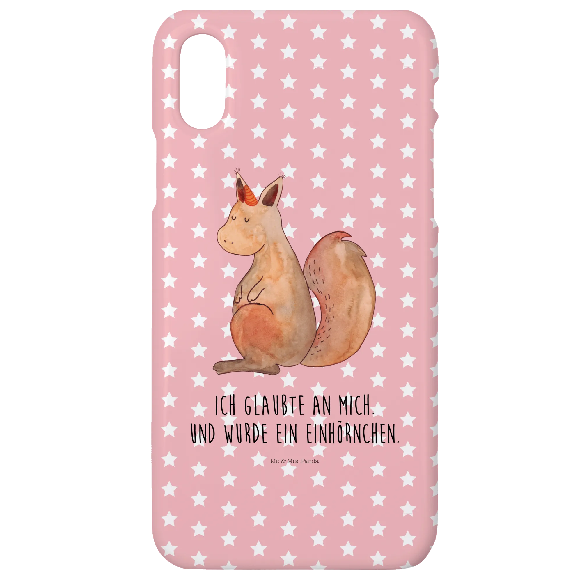 Die iPhone 10 Handyhülle Einhörnchen Glaube aus der bezaubernden Einhorn-Kollektion von Mr. & Mrs. Panda ist der perfekte Begleiter für alle, die an Magie glauben. Diese lustige und farbenfrohe Handyhülle schützt Dein iPhone 10 nicht nur vor Kratzern und Stößen, sondern bringt auch eine Prise Fantasie in Deinen Alltag. Das süße Eichhörnchen mit dem Horn auf dem Kopf ist handgezeichnet und strahlt pure Lebensfreude aus! Die legendäre Nachricht „Ich glaubte an mich. Und wurde ein Einhörnchen.“ inspiriert dazu, an sich selbst zu glauben und seine Träume zu verwirklichen.