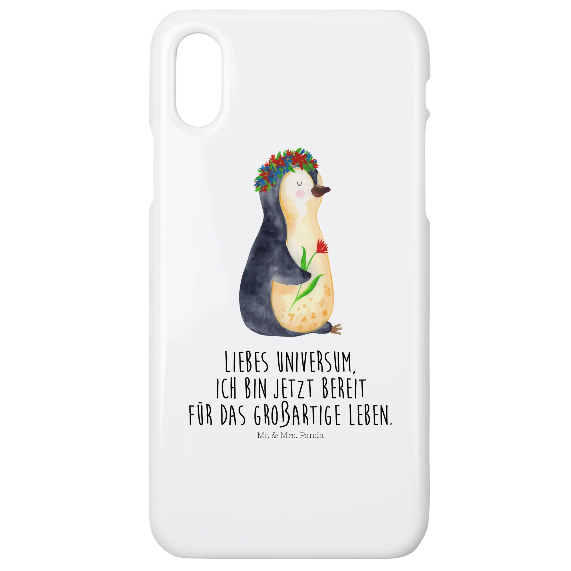 Handyhülle Pinguin Blumen - Iphone 10 Handyhülle - mit Spruch - Weiß